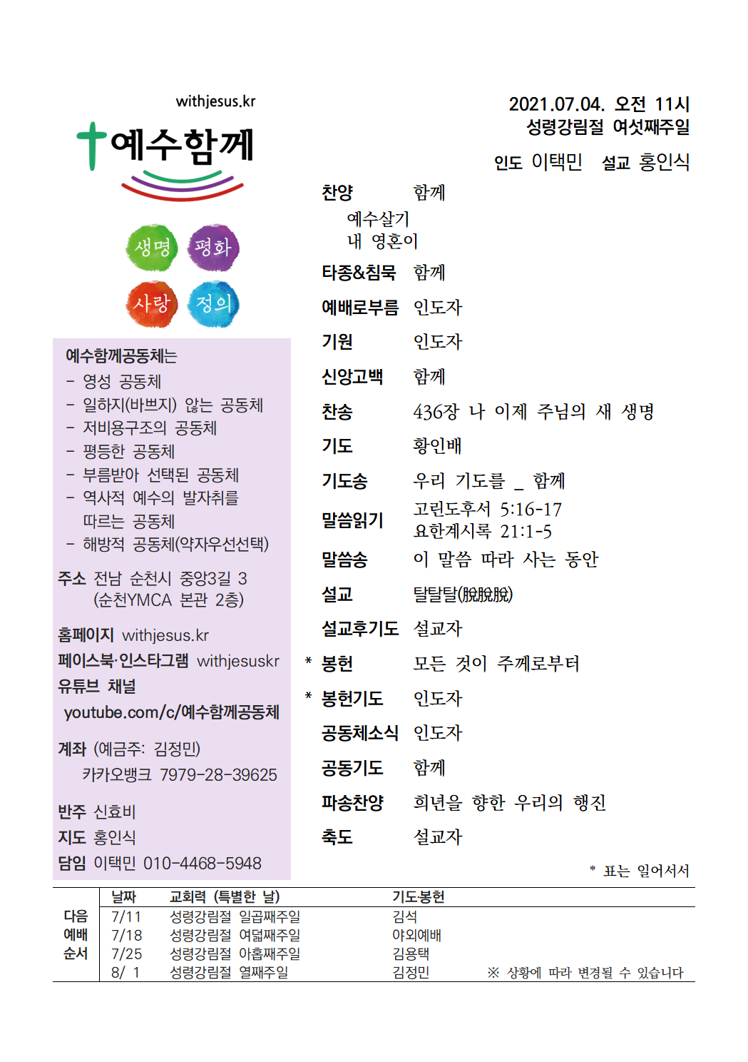 | 2021년 7월 4일 주일예배 실황 (0) | 2021.07.04 |