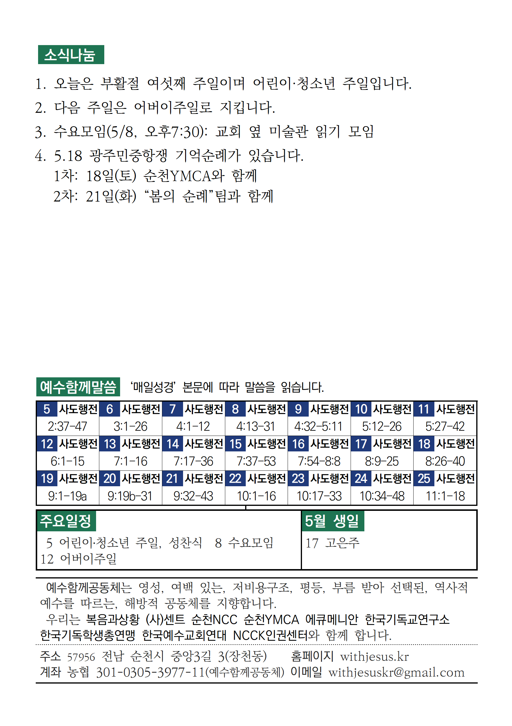 | [주보] 2024년 5월 12일 예수함께공동체 (0) | 2024.05.11 |