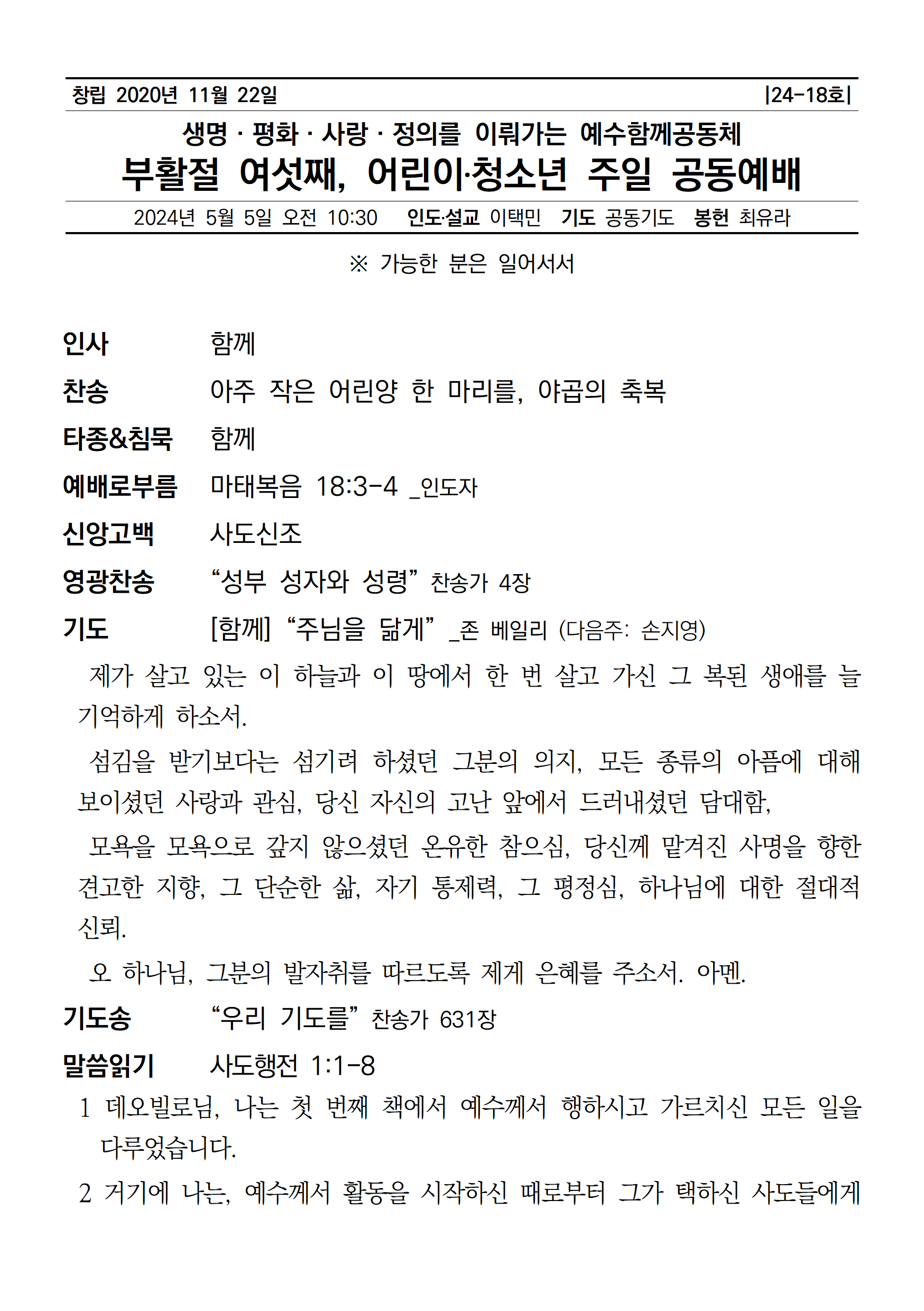 | [주보] 2024년 4월 28일 예수함께공동체 (0) | 2024.04.27 |