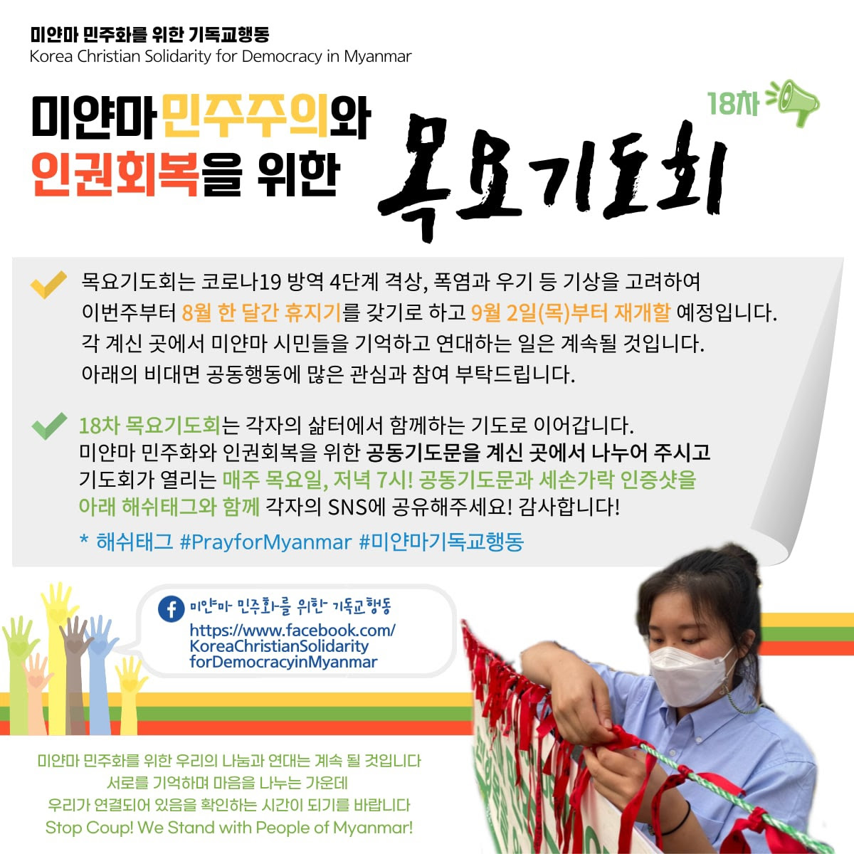 각 계신 곳에서 미얀마를 기억하여 주시고 각 포스터를 참고하시어 모이는 기도회를