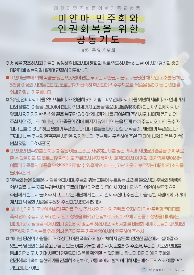* 지난 기도 자료 : 페이스북 '미얀마민주화를위한기독교행동' 검색