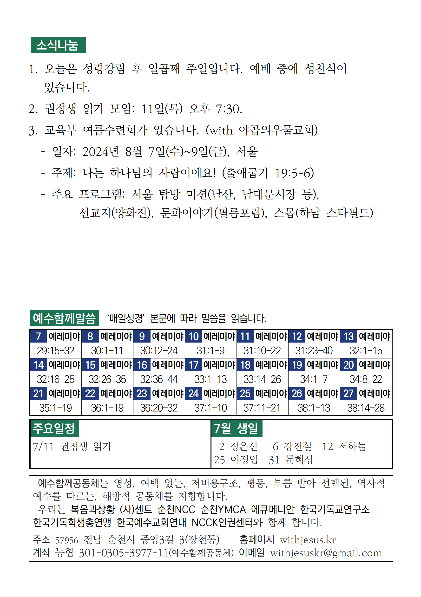 | [주보] 2024년 7월 14일 예수함께공동체 (0) | 2024.07.13 |