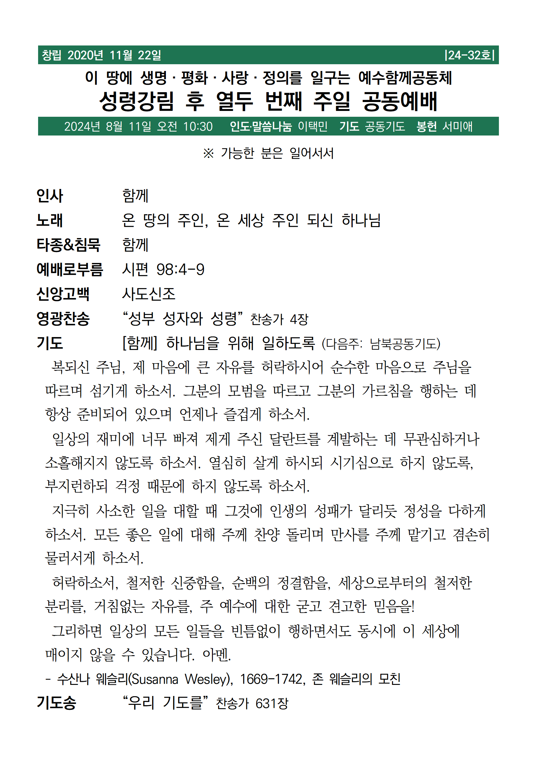 [주보, 찬양] 2024년 8월 11일 예수함께공동체
