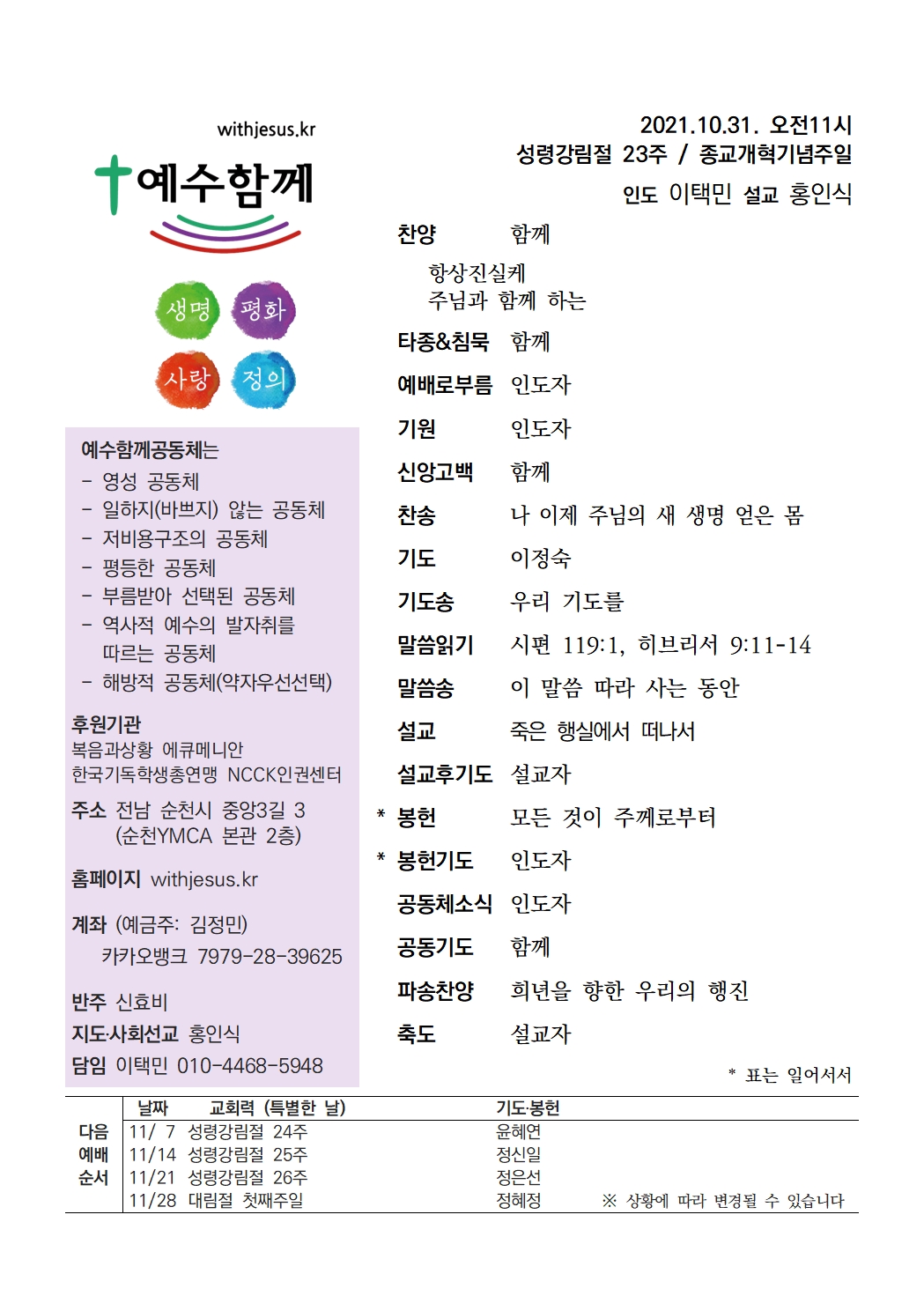 | 2021년 11월 7일 예수함께 주일예배 자료 (0) | 2021.11.07 |