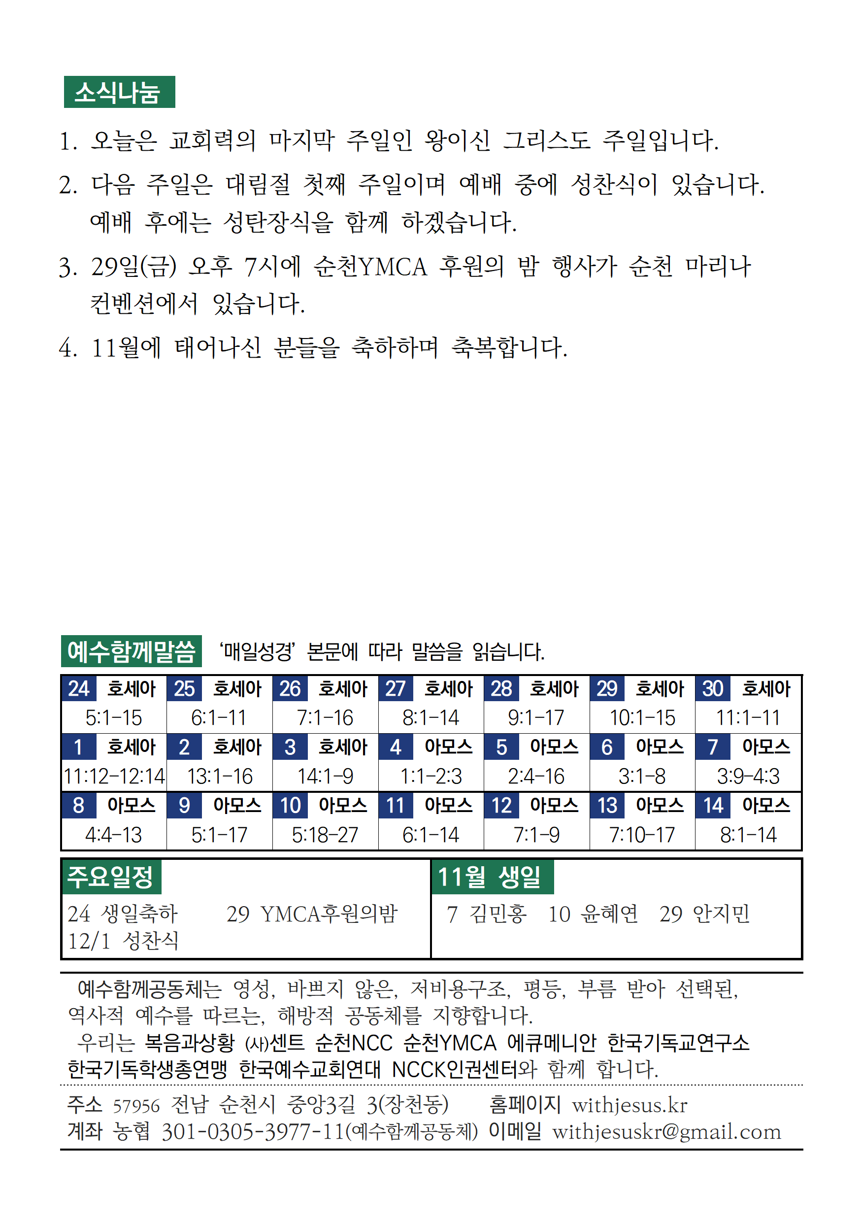[주보, 악보] 2024년 11월 24일 예수함께공동체