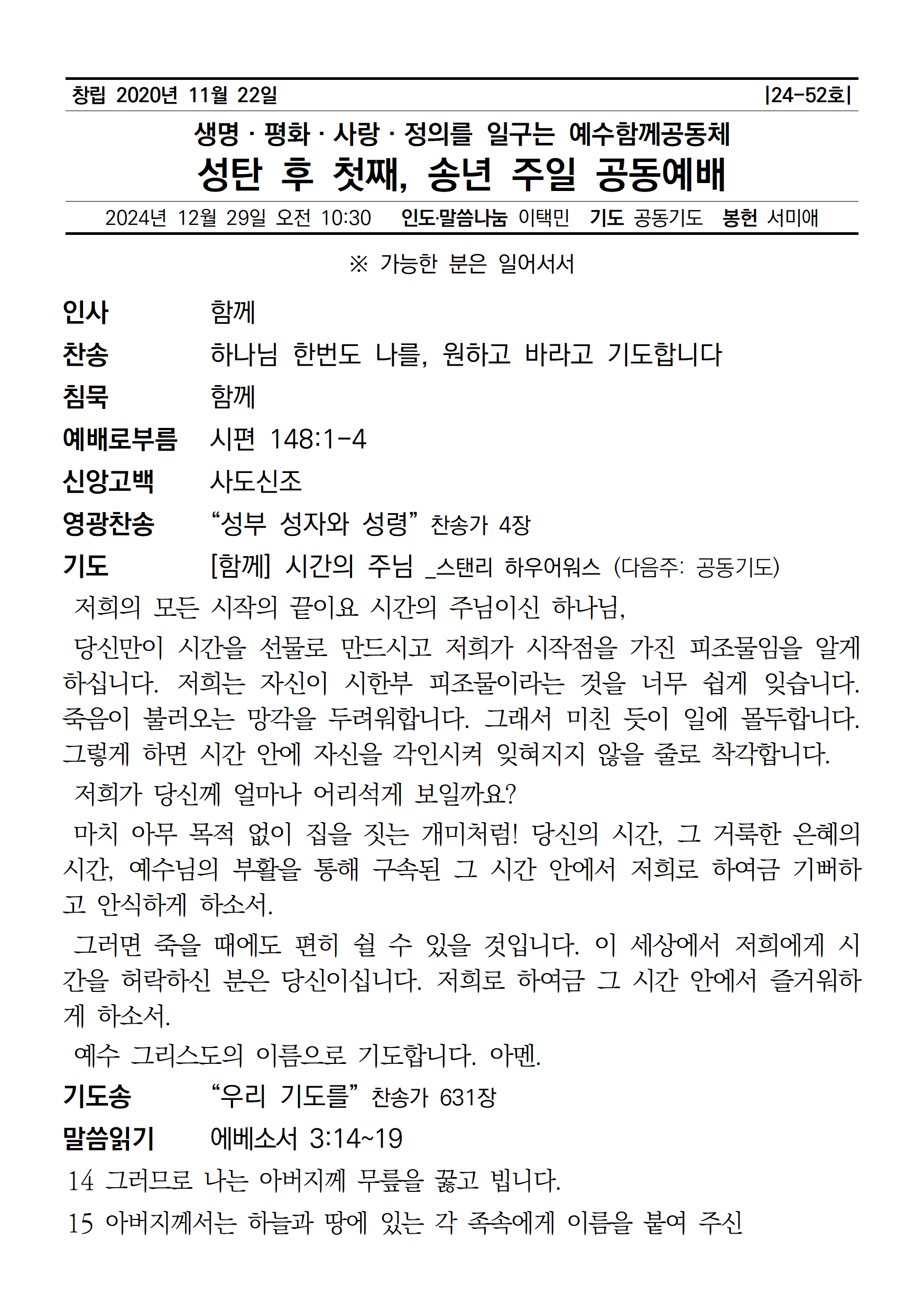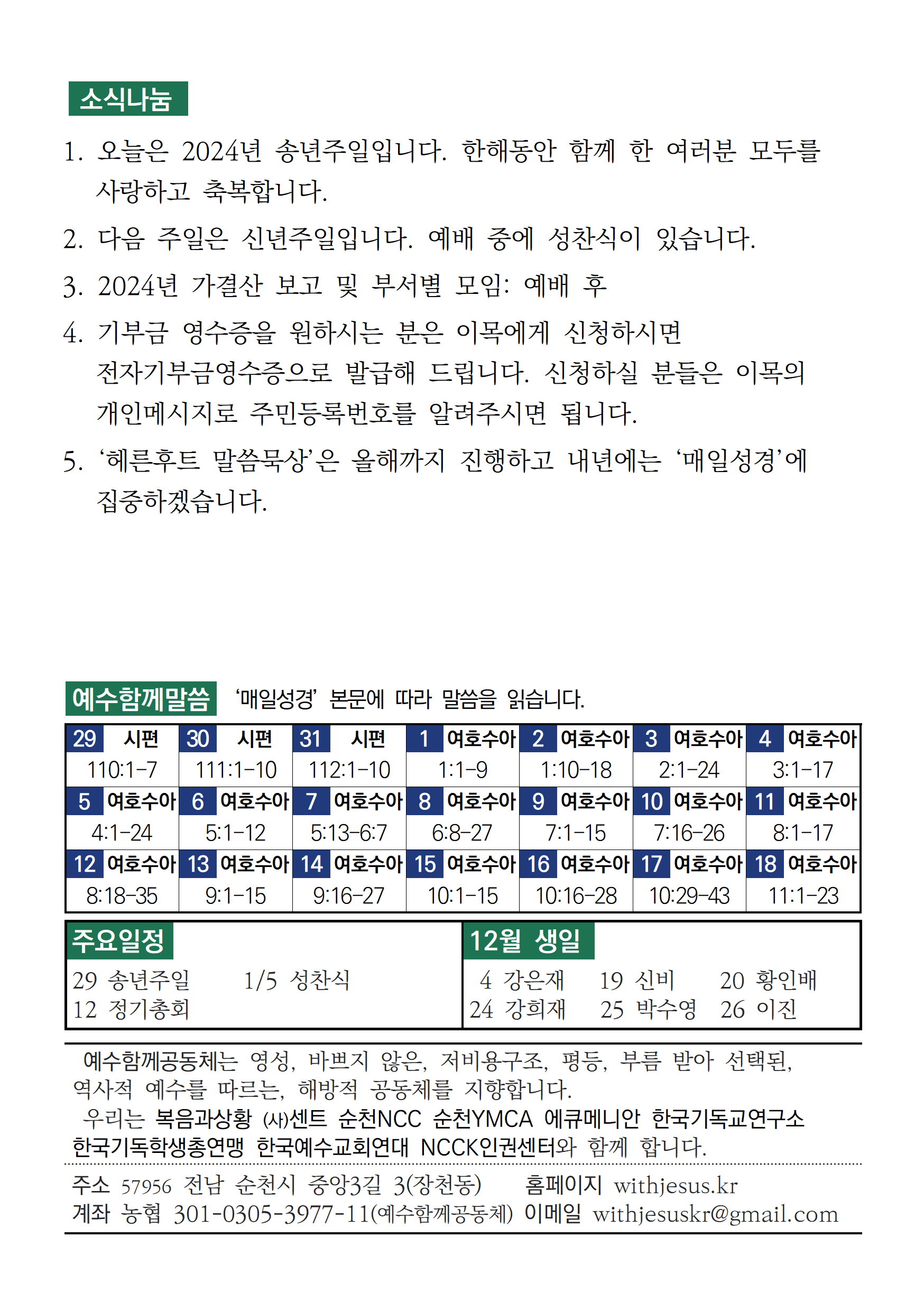 | [주보, 악보] 2024년 12월 22일 예수함께공동체 (0) | 2024.12.21 |