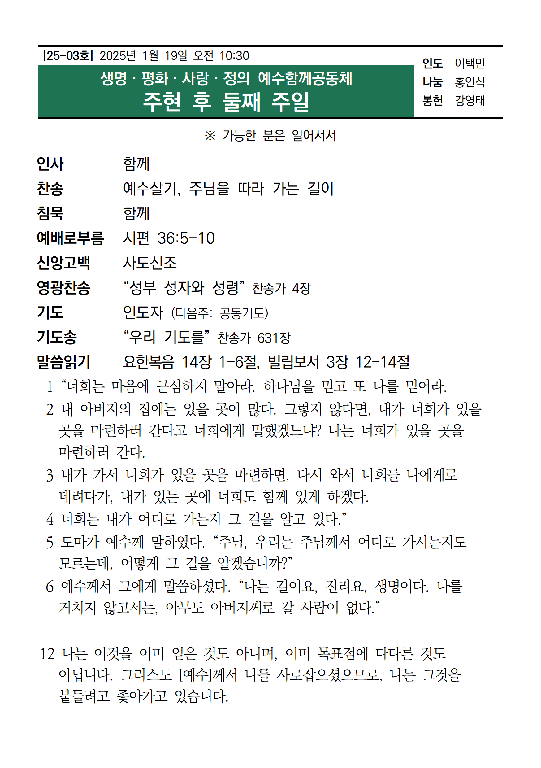 | [주보] 2025년 1월 26일 예수함께공동체 주일 공동예배 (0) | 2025.01.25 |