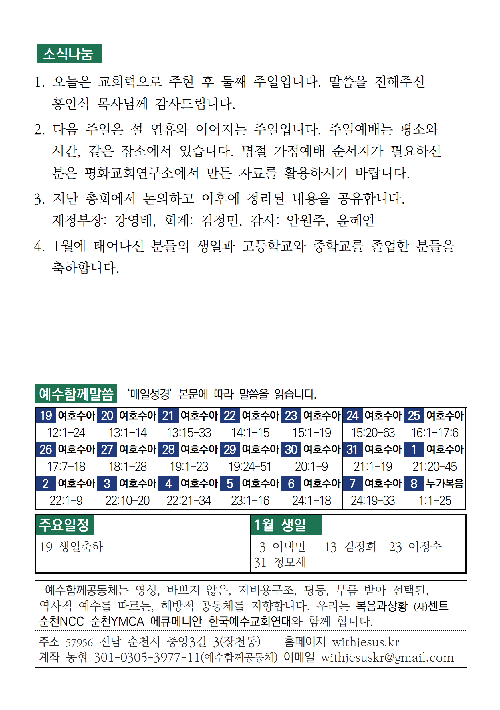 | [주보] 2025년 1월 12일 예수함께공동체 (0) | 2025.01.11 |