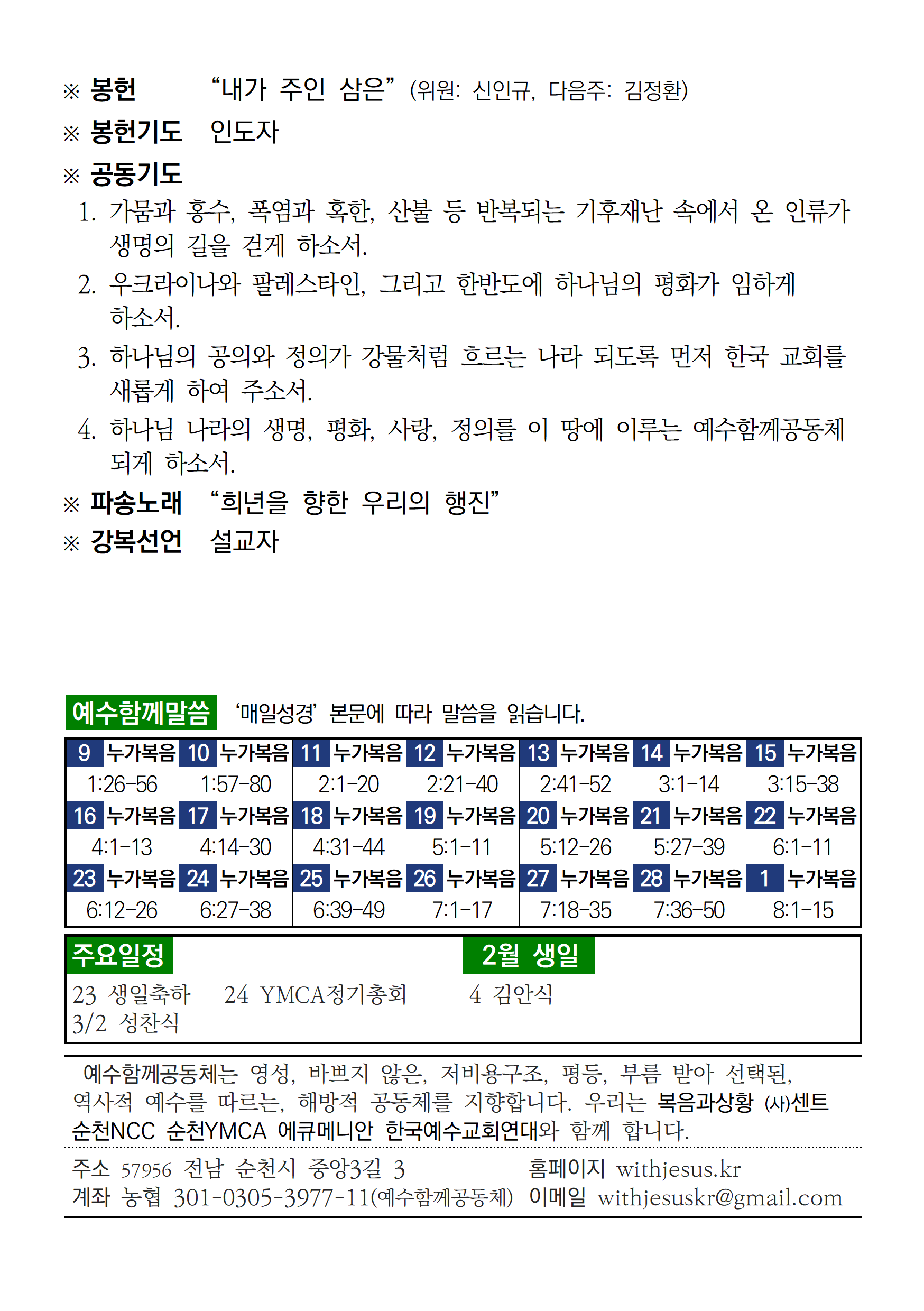 [주보] 2025년 2월 9일 예수함께공동체