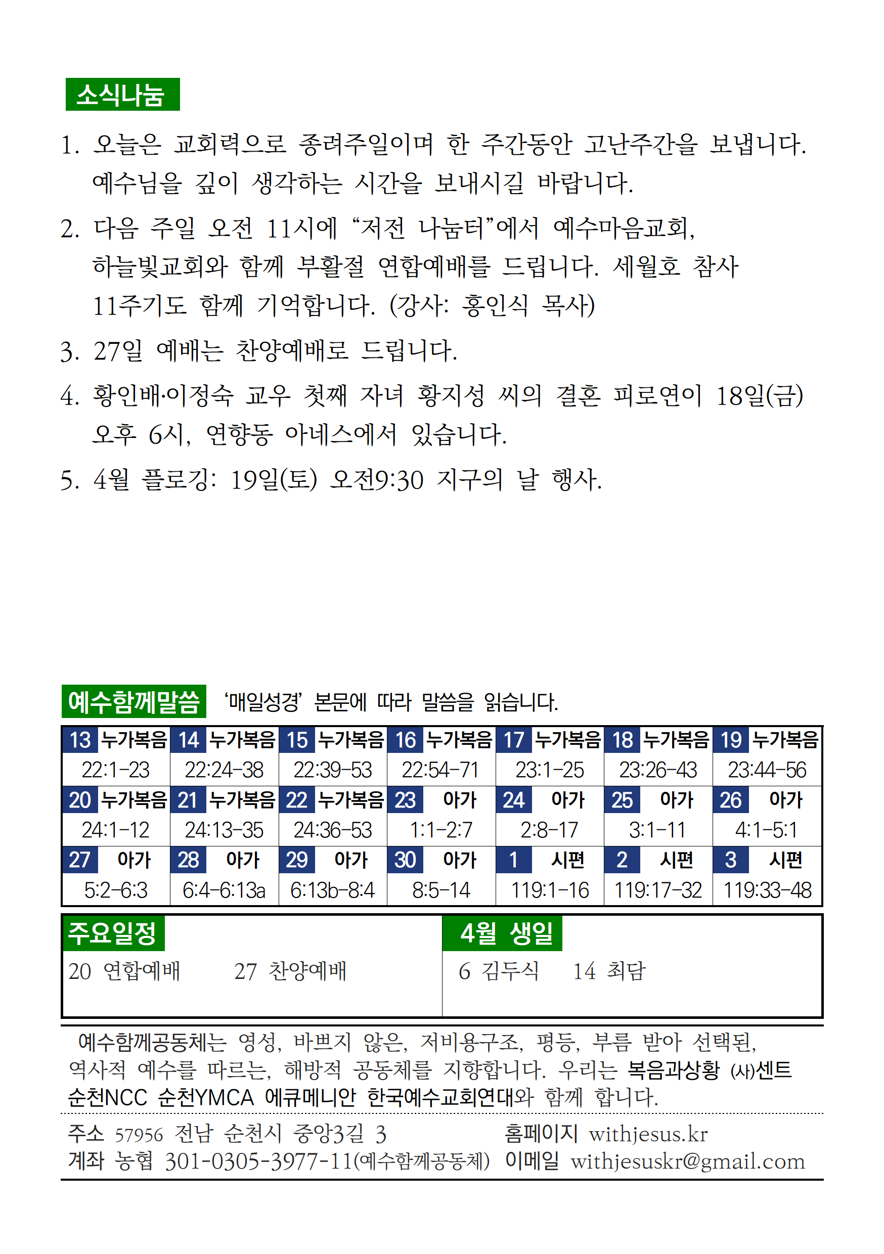| [주보] 2025년 4월 6일 예수함께공동체 (0) | 2025.04.05 |