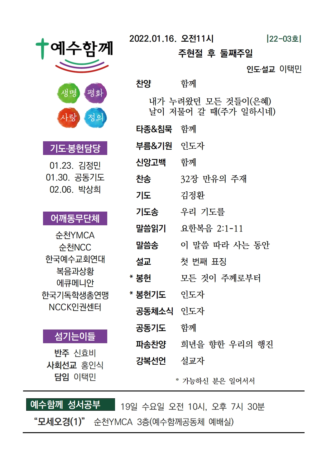 | 2022년 1월 23일 예수함께 주일예배 자료 (0) | 2022.01.22 |