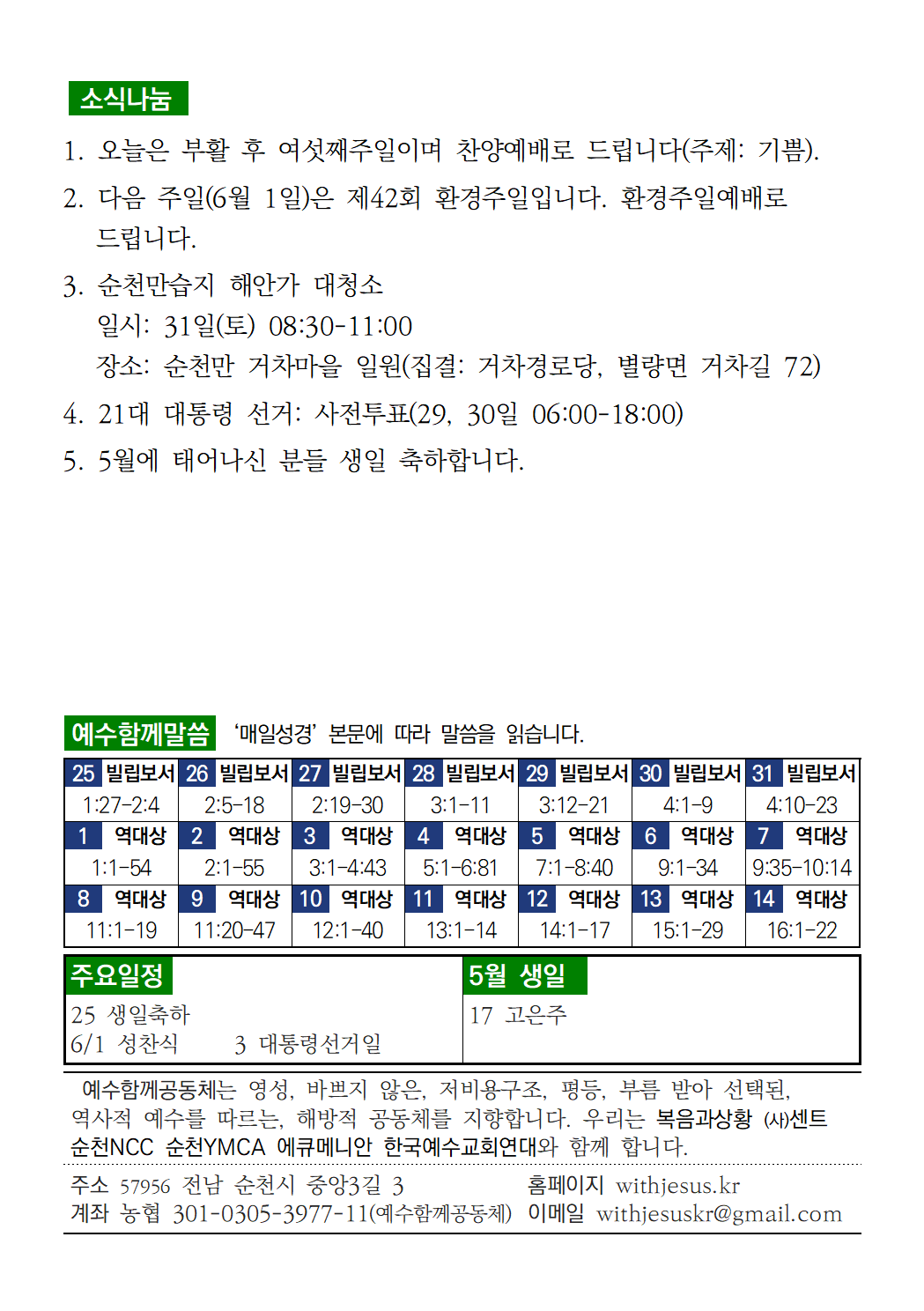 | [주보] 2025년 6월 1일 예수함께공동체 (0) | 2025.05.31 |