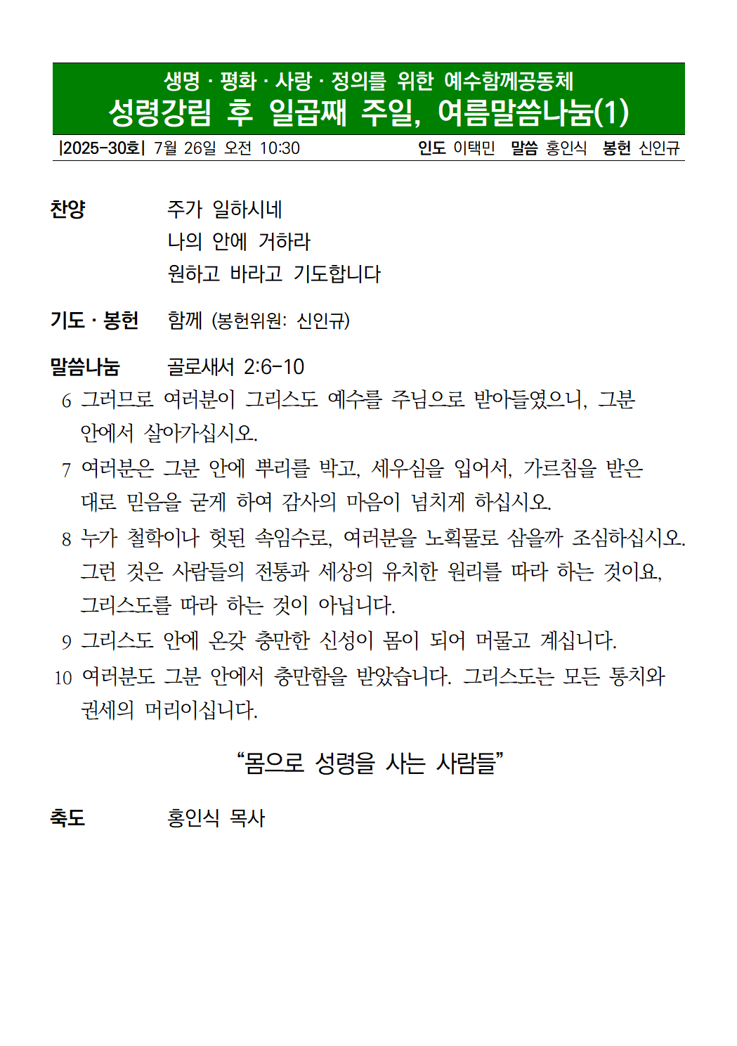 | [주보] 2025년 7월 13일 예수함께공동체 (0) | 2025.07.12 |