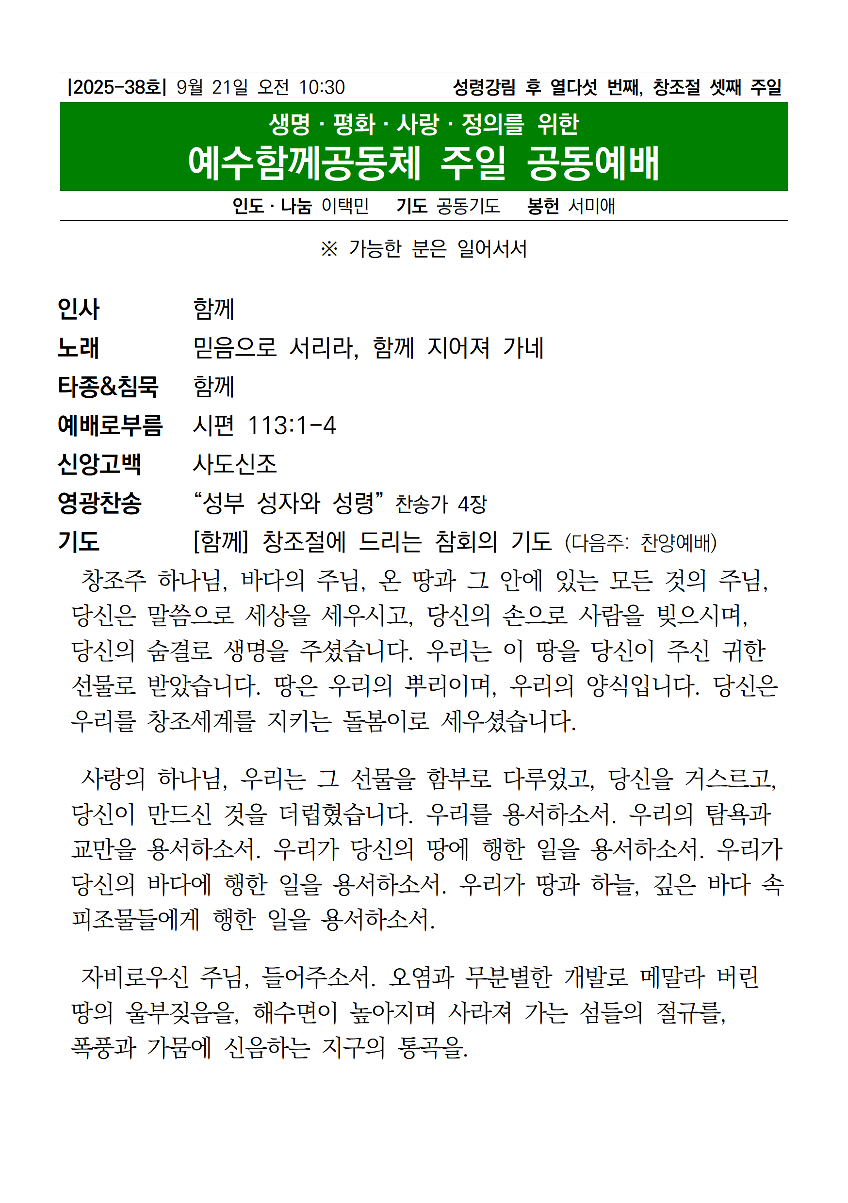 | [주보] 2025년 9월 14일 예수함께공동체 (0) | 2025.09.13 |