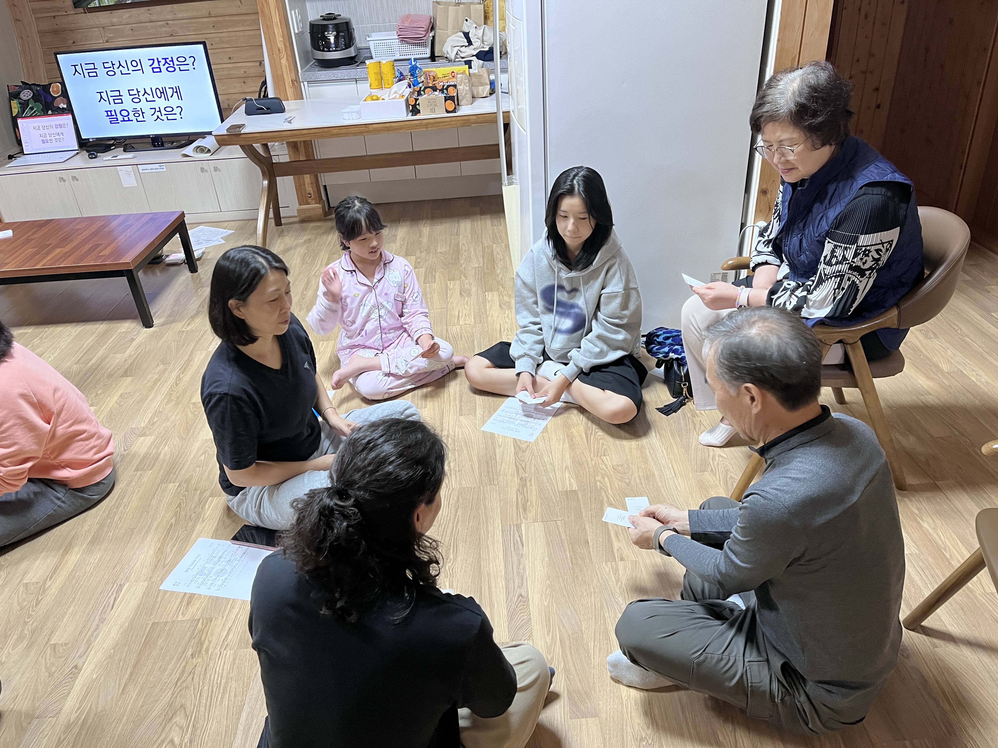 지금 자신의 감정을 이야기 하며 서로의 마음을 나누는 시간을 가졌습니다.