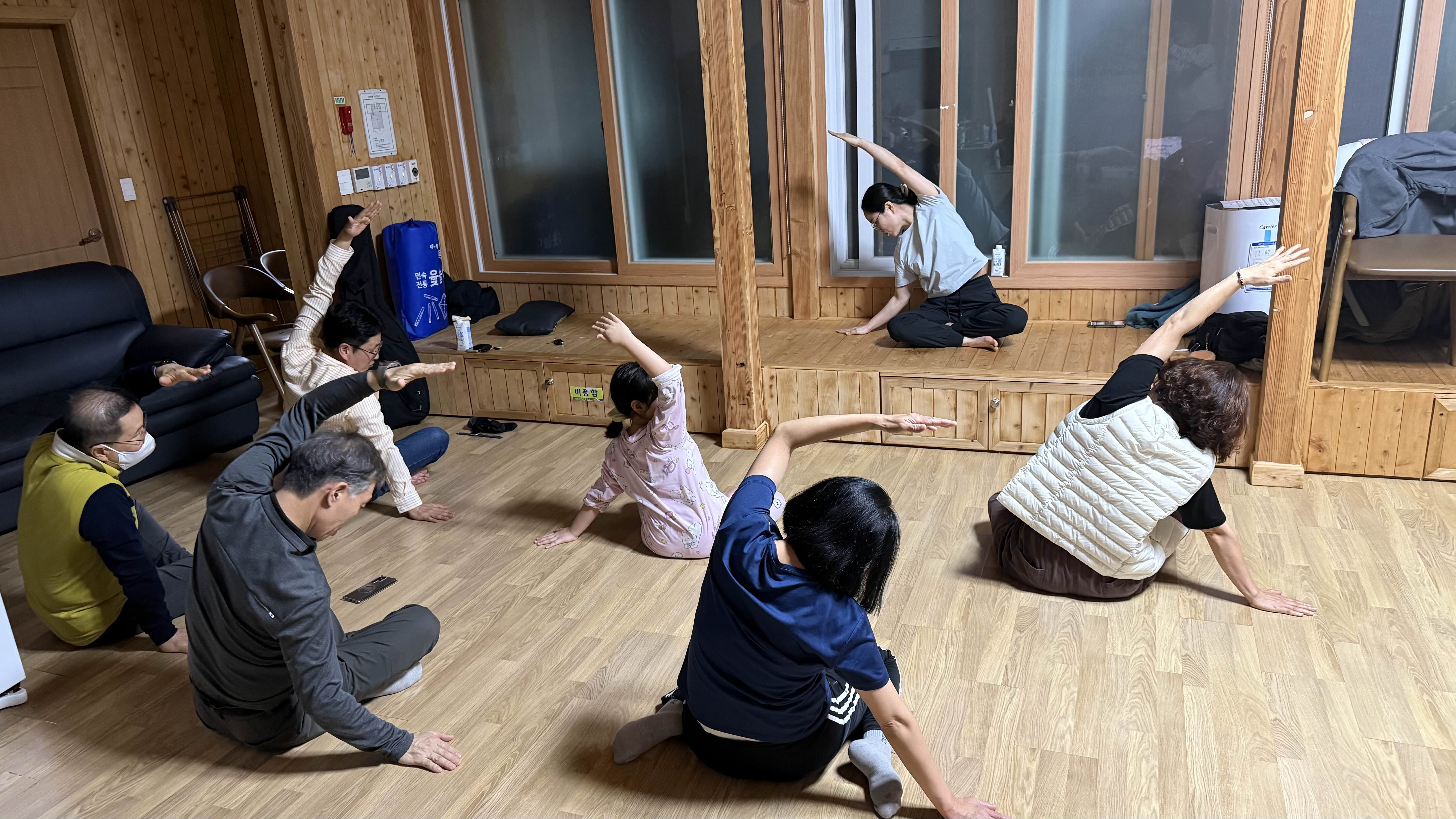 다함께 요가를 하는 것으로 첫날을 마무리 했습니다.