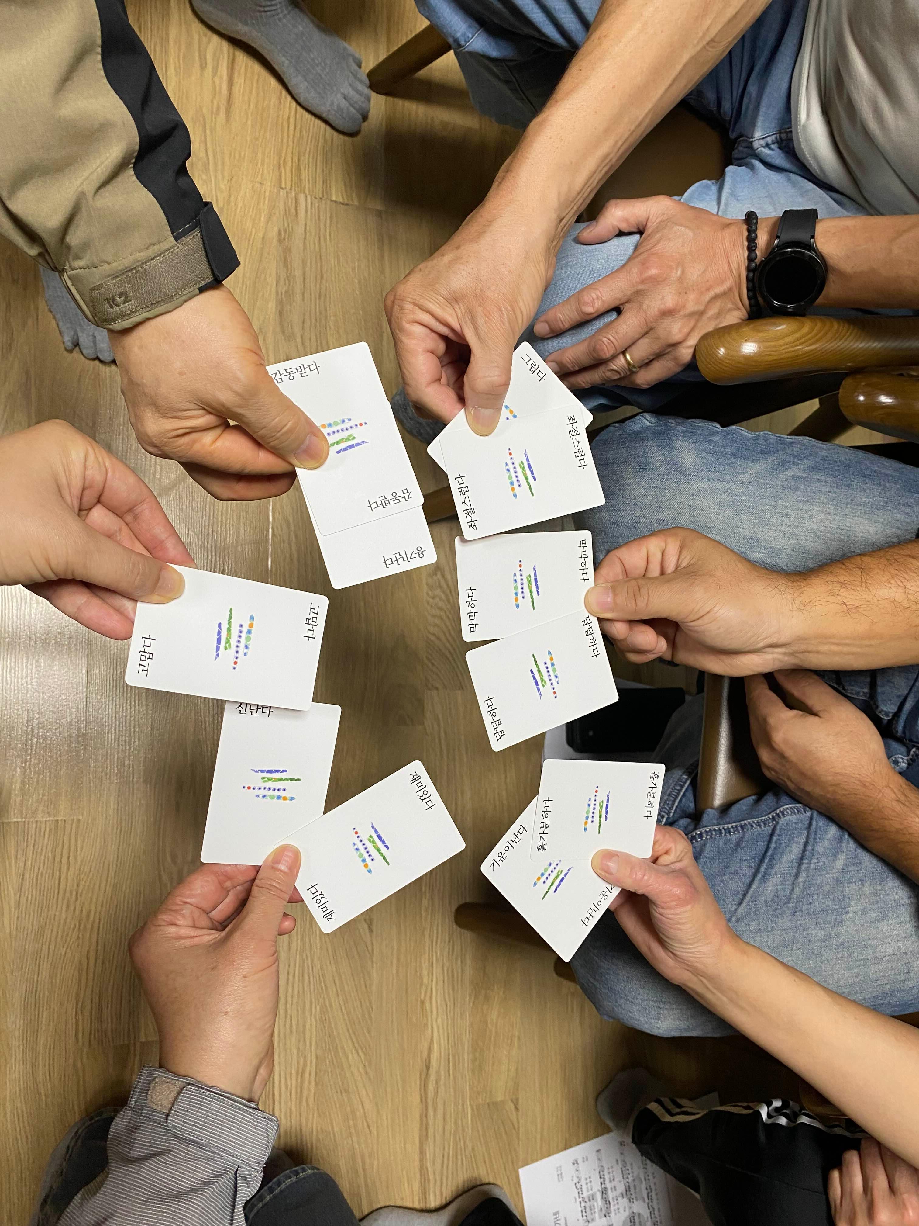 지금 자신의 감정을 이야기 하며 서로의 마음을 나누는 시간을 가졌습니다.