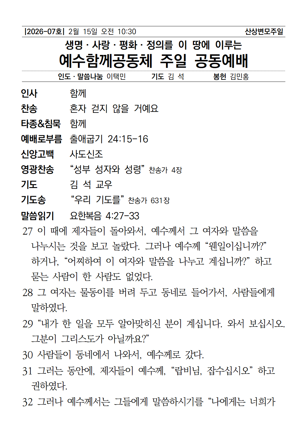 | [주보] 2026년 2월 8일 예수함께공동체 (0) | 2026.02.07 |