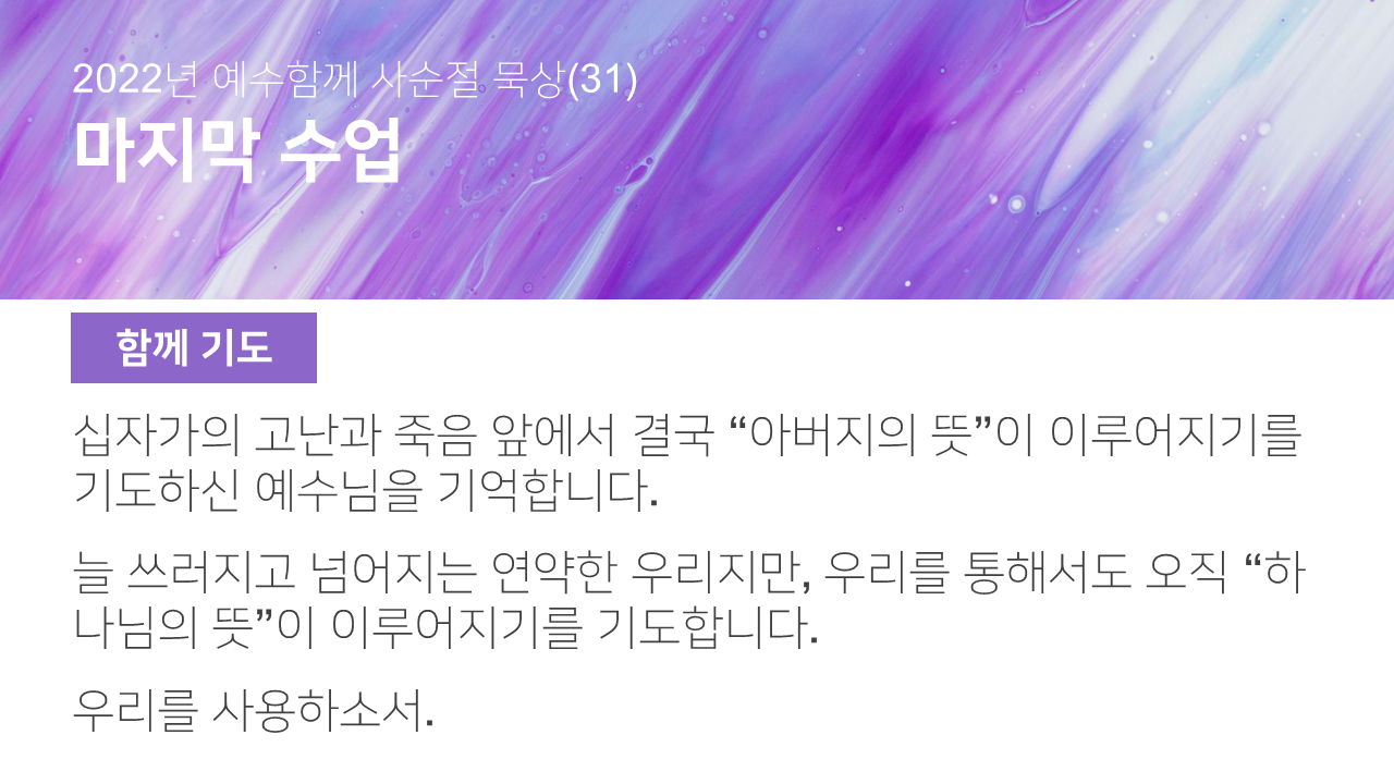 | [2022 예수함께 사순절 묵상] 33일차_ 4월 8일(금) (0) | 2022.04.09 |