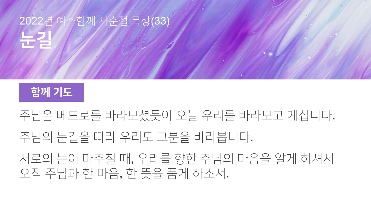 | [2022 예수함께 사순절 묵상] 32일차_ 4월 7일(목) (0) | 2022.04.09 |