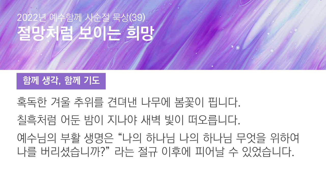 [2022 예수함께 사순절 묵상] 39일차 _ 4월 15일(금)