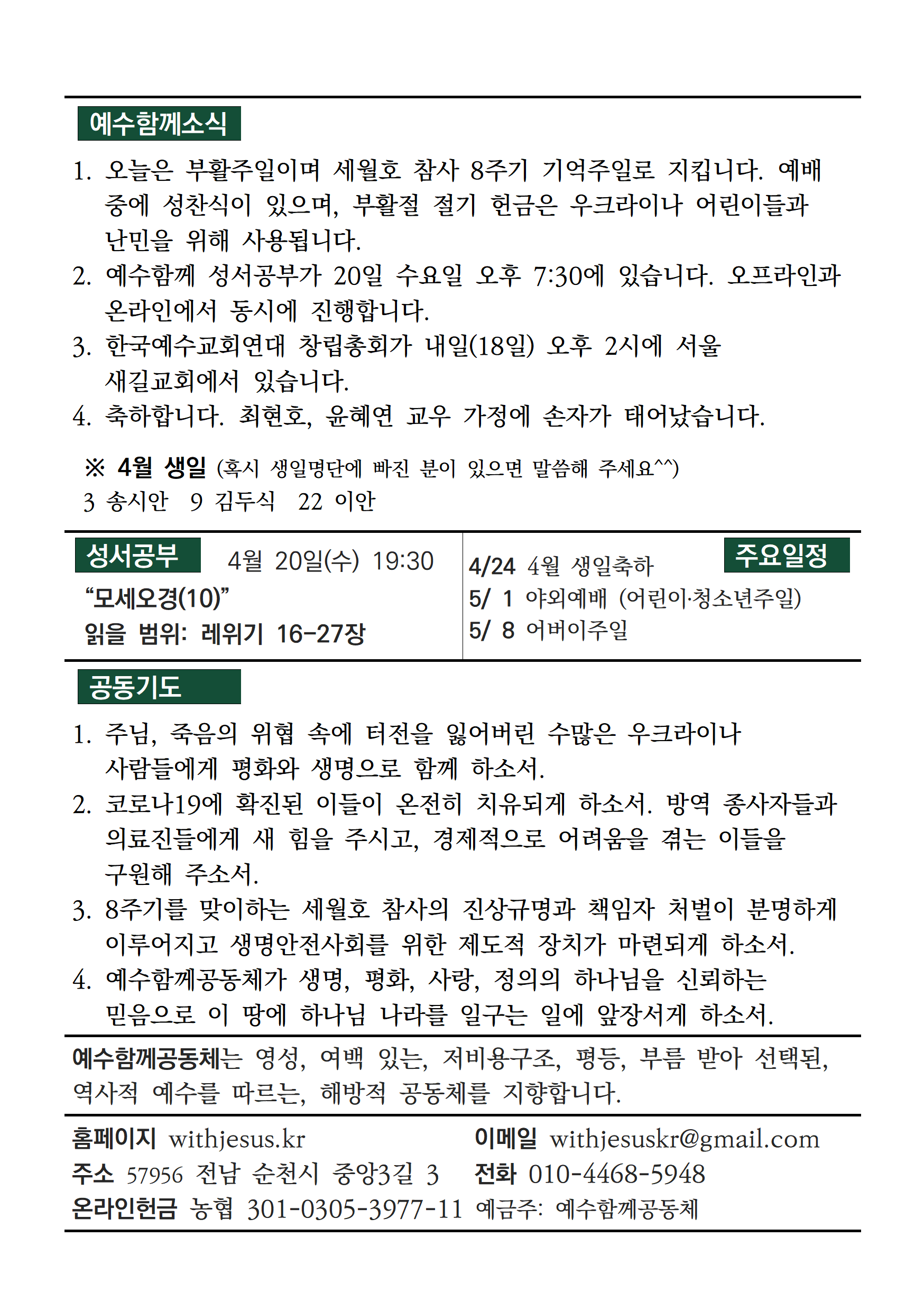 | 2022년 4월 10일 예수함께 예배자료 (0) | 2022.04.09 |