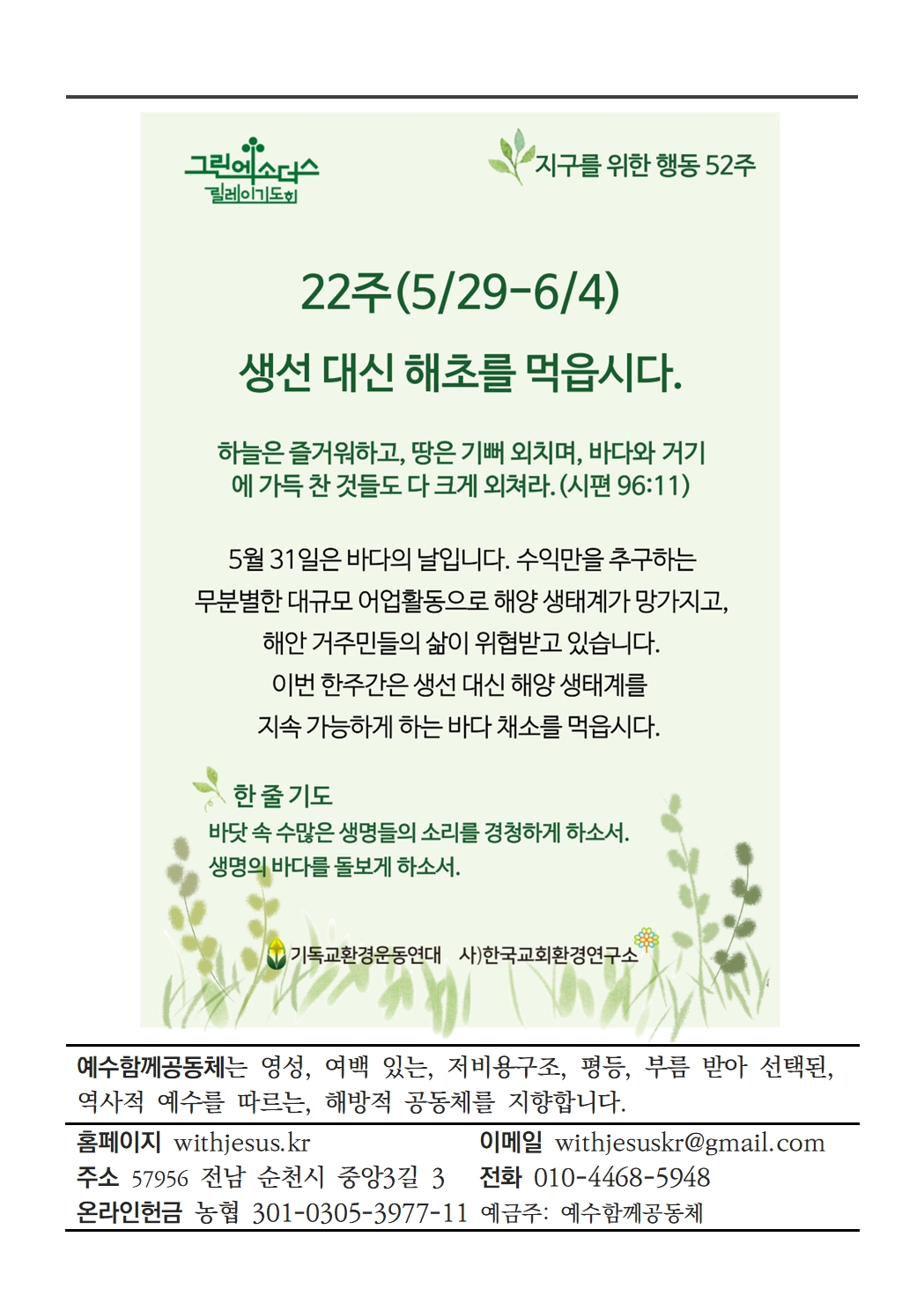 | 2022년 6월 5일 예수함께 주일예배 자료 (0) | 2022.06.04 |