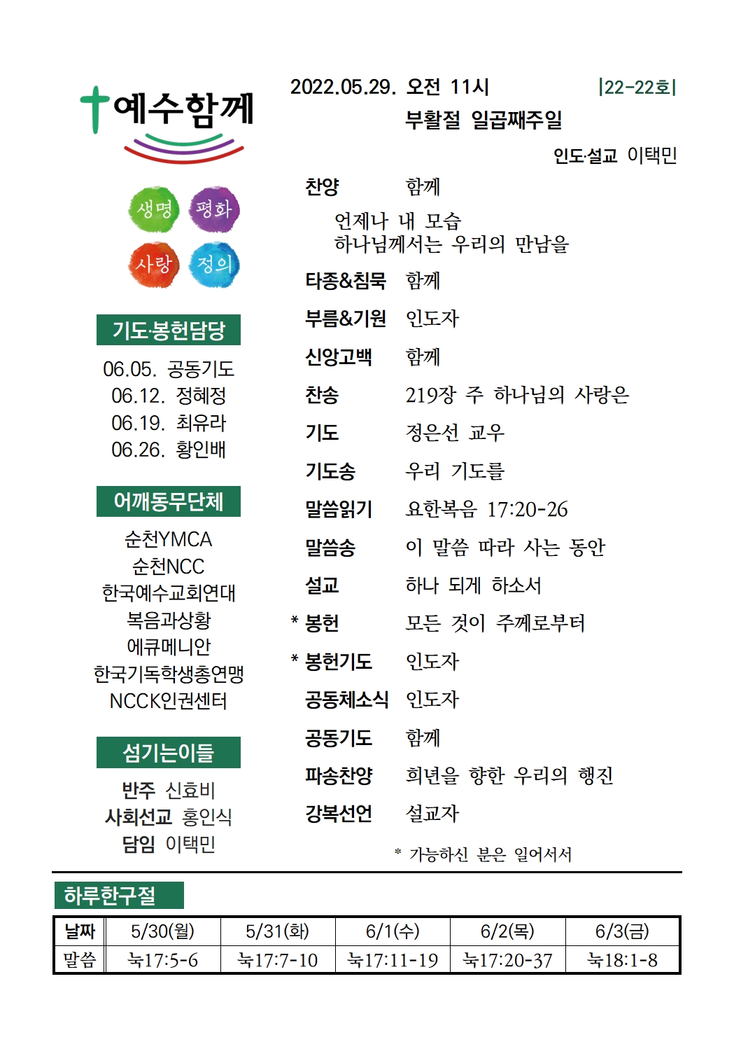 | 2022년 5월 22일 예수함께 주일예배 자료 (0) | 2022.05.21 |