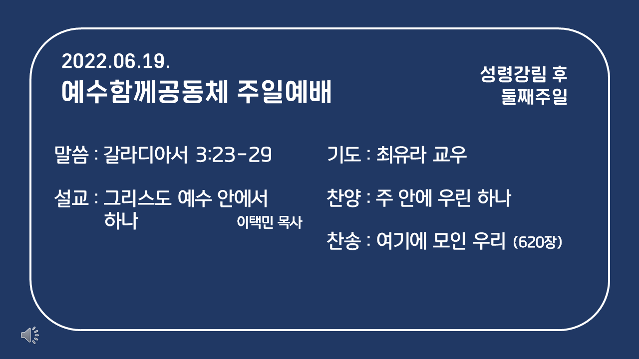 | 2022년 6월 26일 예수함께 주일예배 (0) | 2022.06.25 |