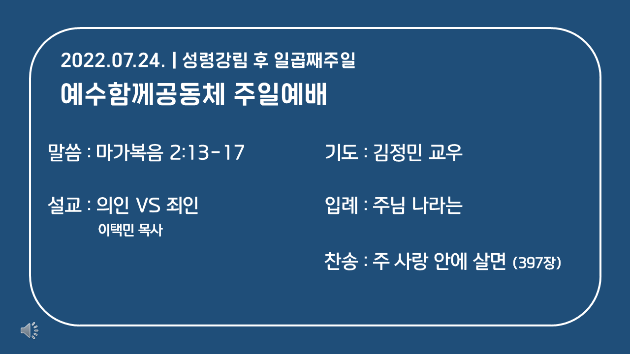 | 2022년 7월 17일 예수함께 주일예배 자료 (0) | 2022.07.16 |