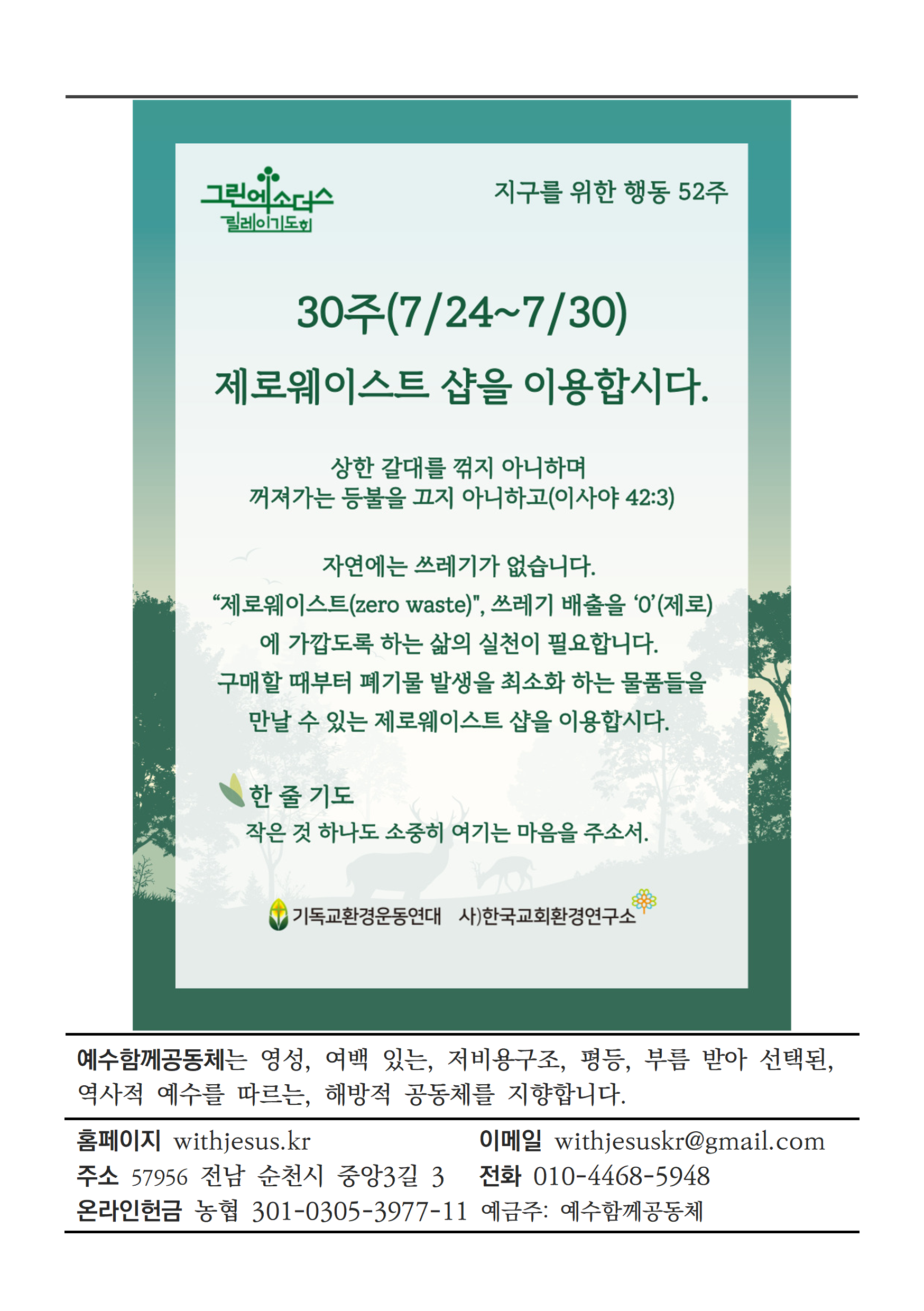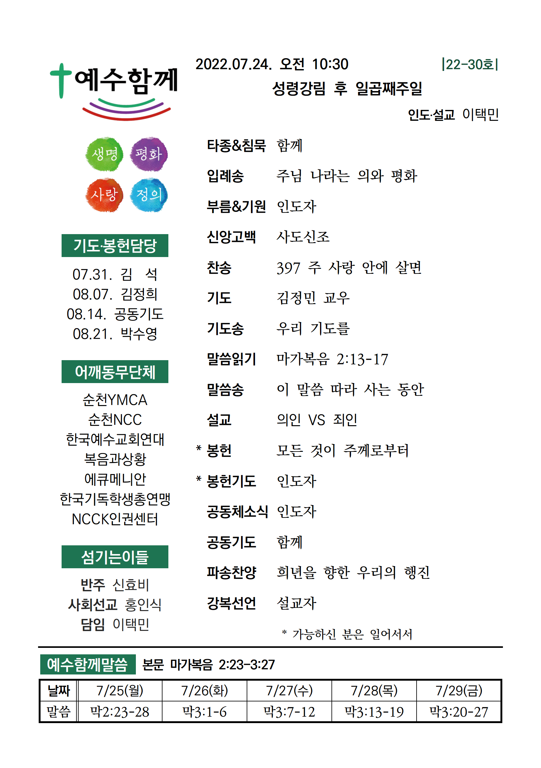 | 2022년 7월 31일 예수함께 주일예배 자료 (0) | 2022.07.30 |
