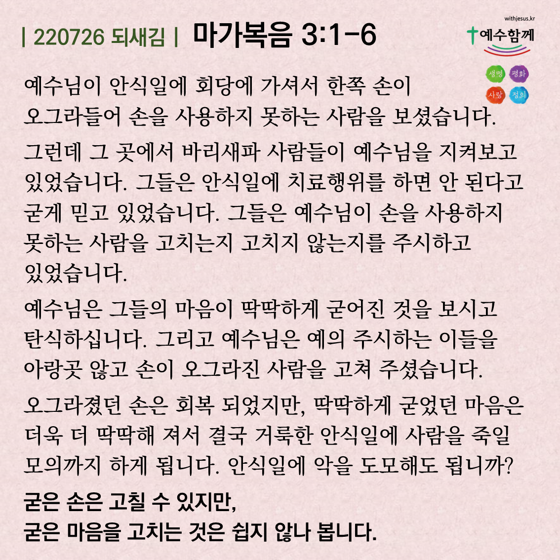 '예수함께 이야기 > 주중말씀' 카테고리의 다른 글