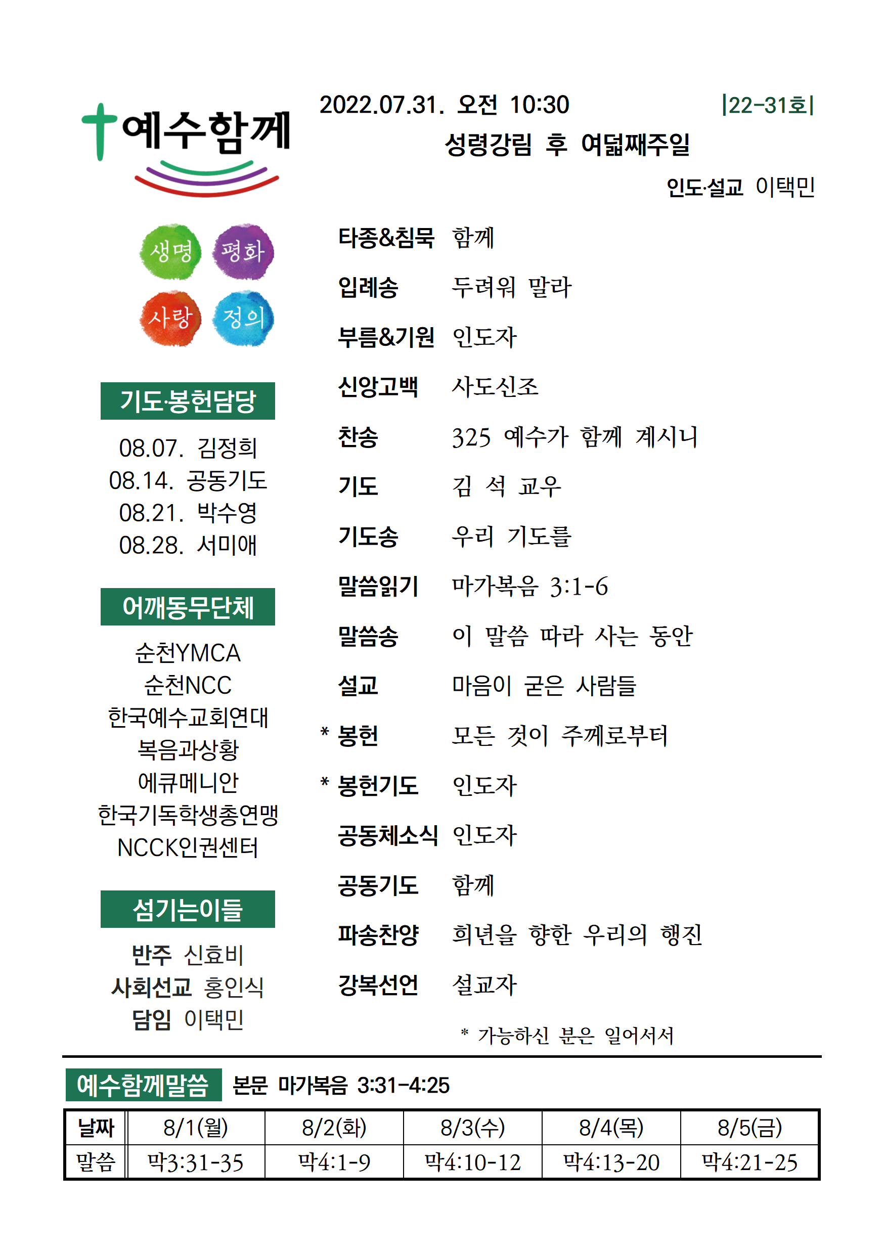 | 2022년 7월 24일 예수함께 주일예배 자료 (0) | 2022.07.23 |