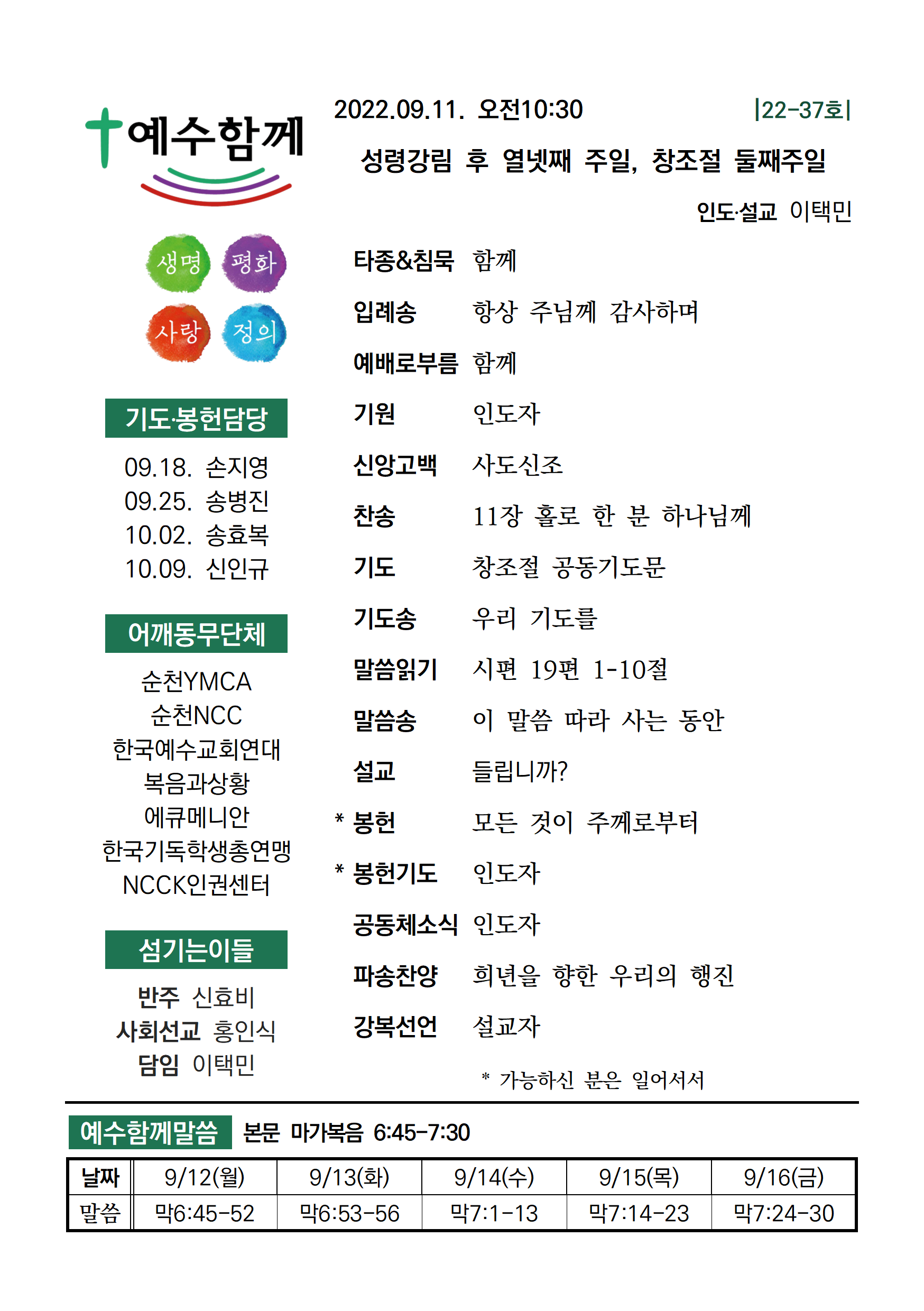 | 2022년 9월 18일 예수함께 주일예배 자료 (0) | 2022.09.17 |