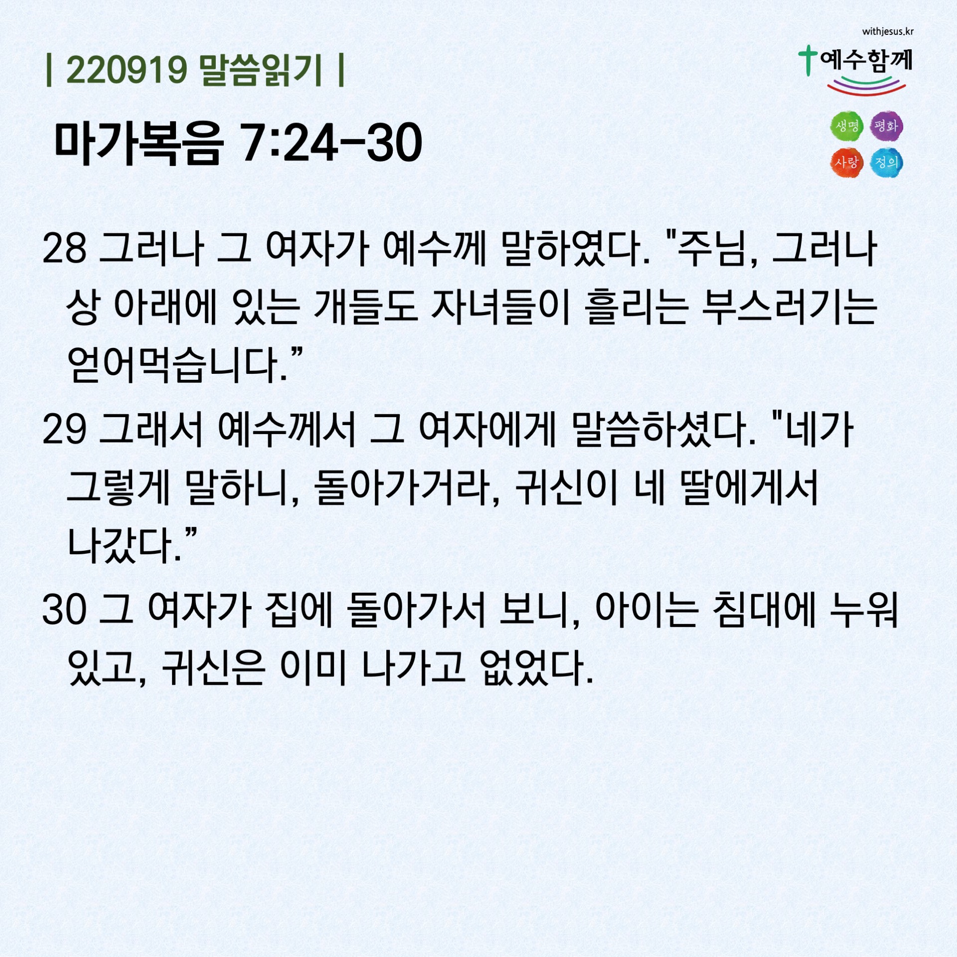 | [예수함께말씀 220916] 마가복음 7:14-23 (0) | 2022.09.16 |