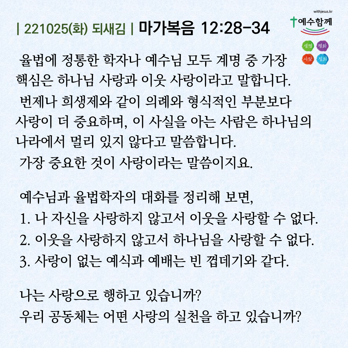 | [예수함께말씀 221027] 마가복음 12:41-44 (0) | 2022.10.26 |