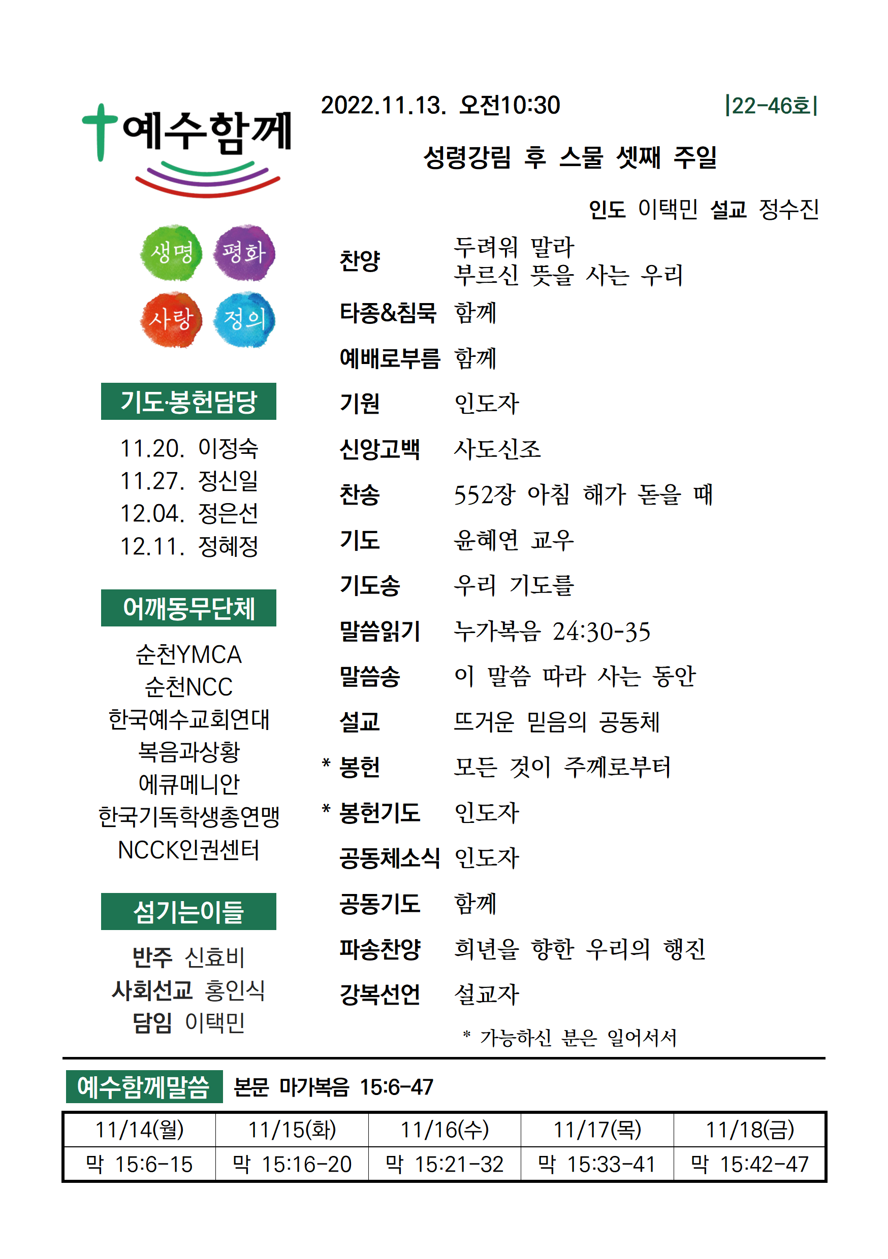 | 2022년 11월 20일 예수함께 주일예배 자료 (0) | 2022.11.18 |