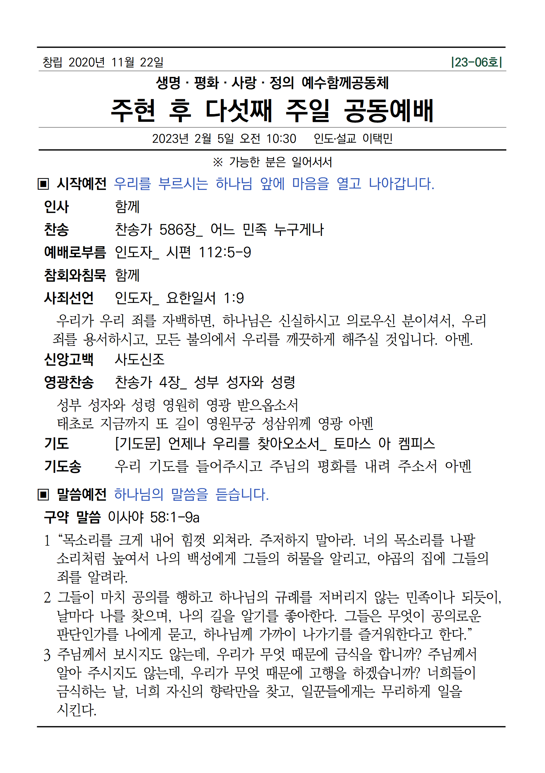 | [주일공동예배] 2023년 1월 22일 예수함께공동체 (0) | 2023.01.21 |