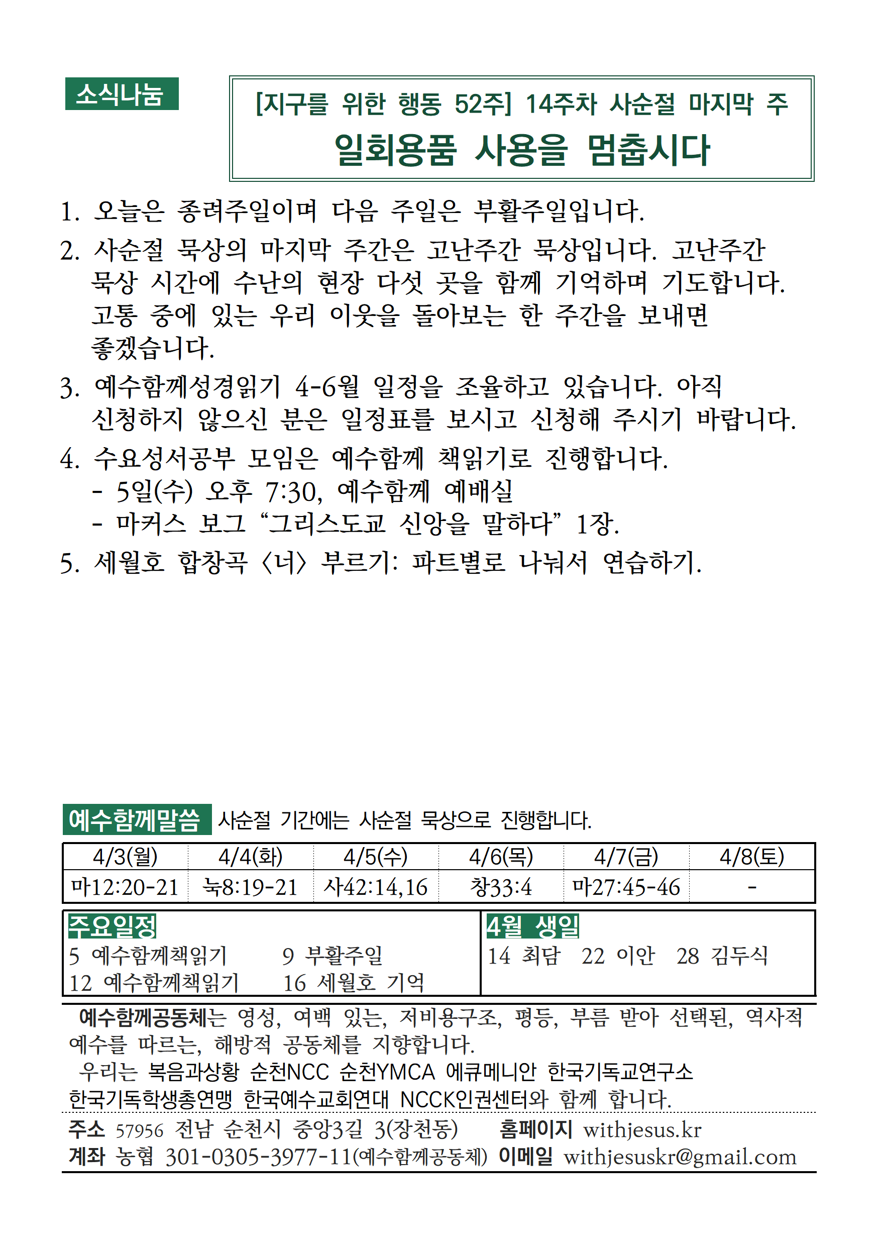 | [주보] 2023년 4월 9일 예수함께공동체 (0) | 2023.04.07 |