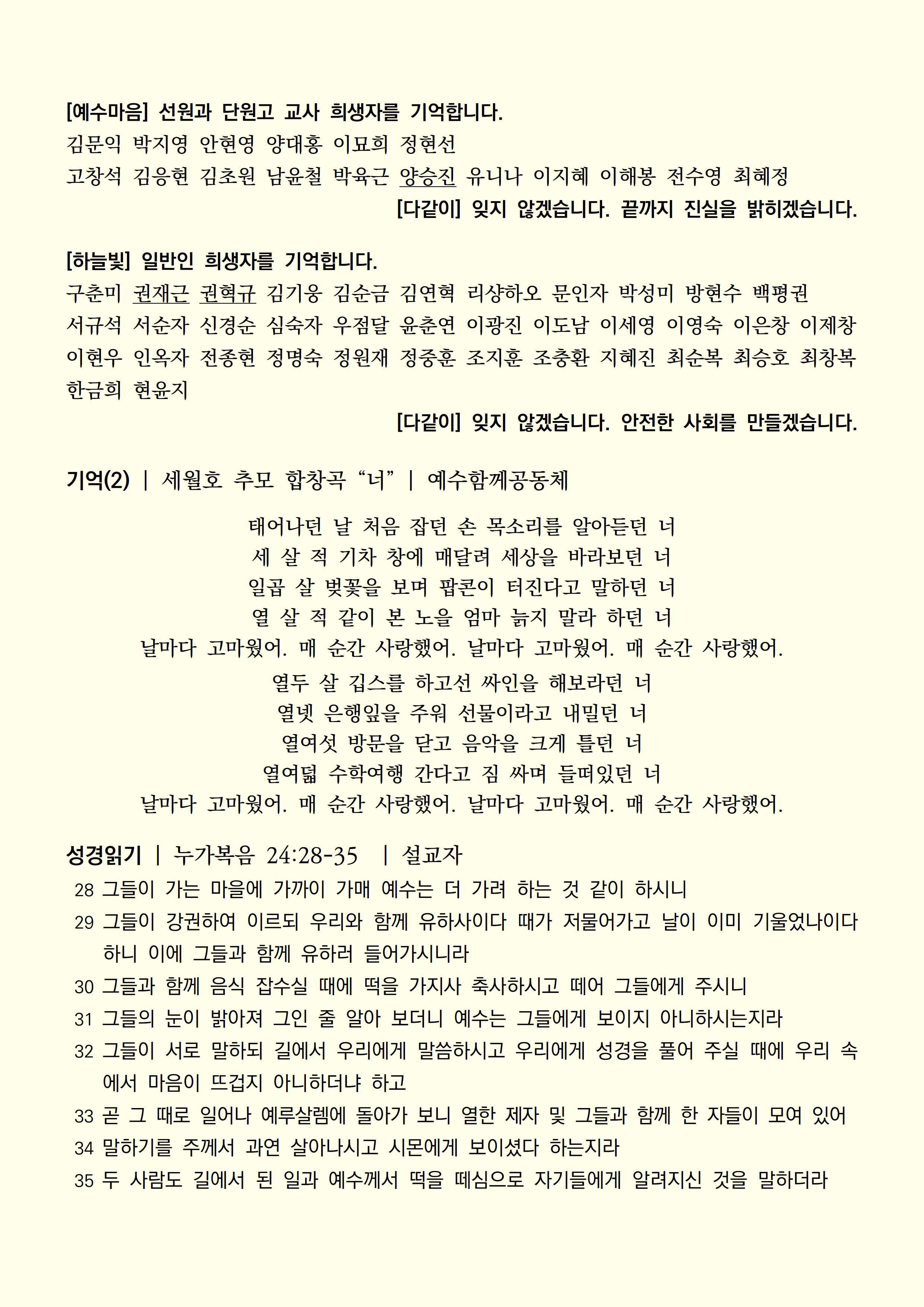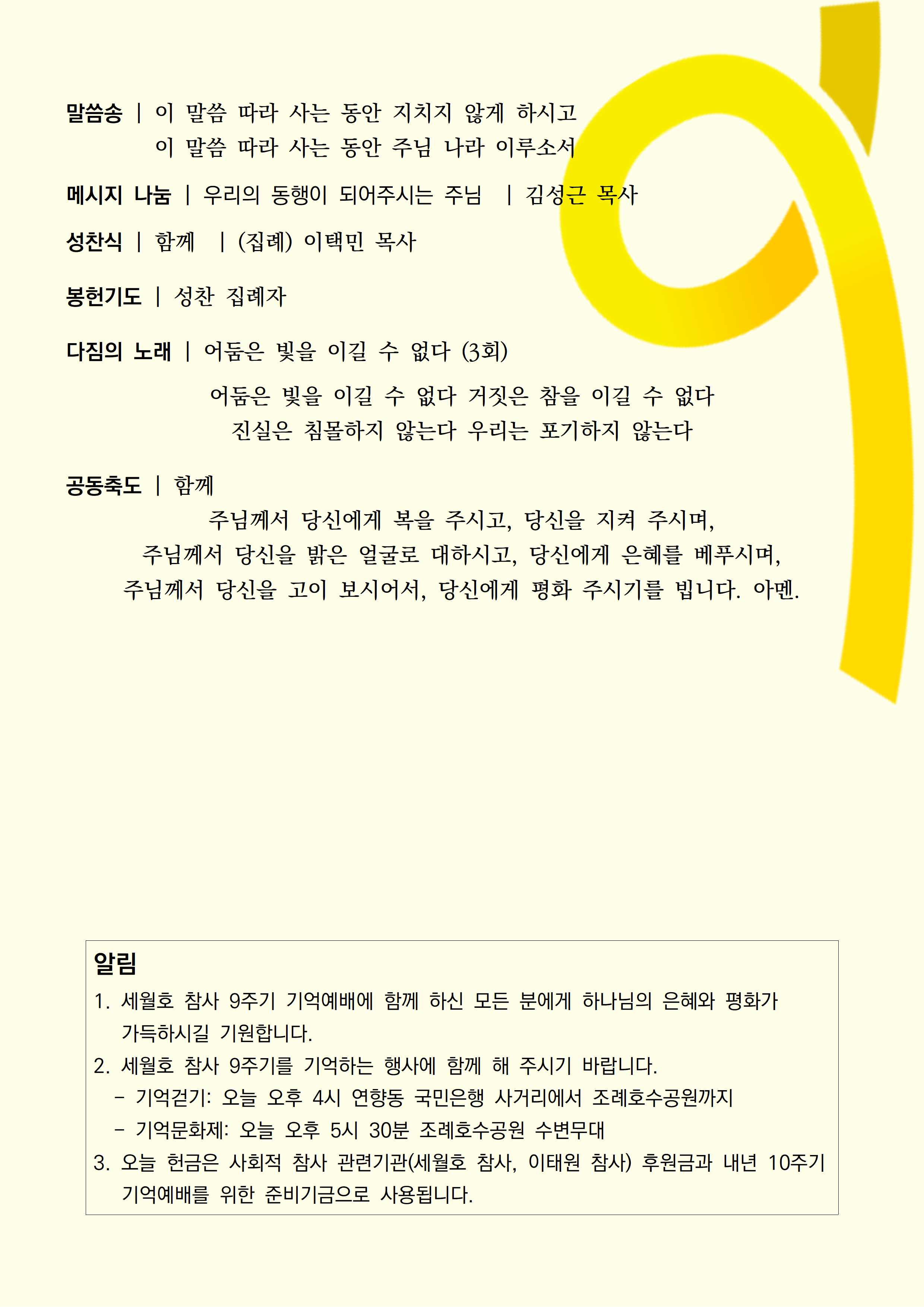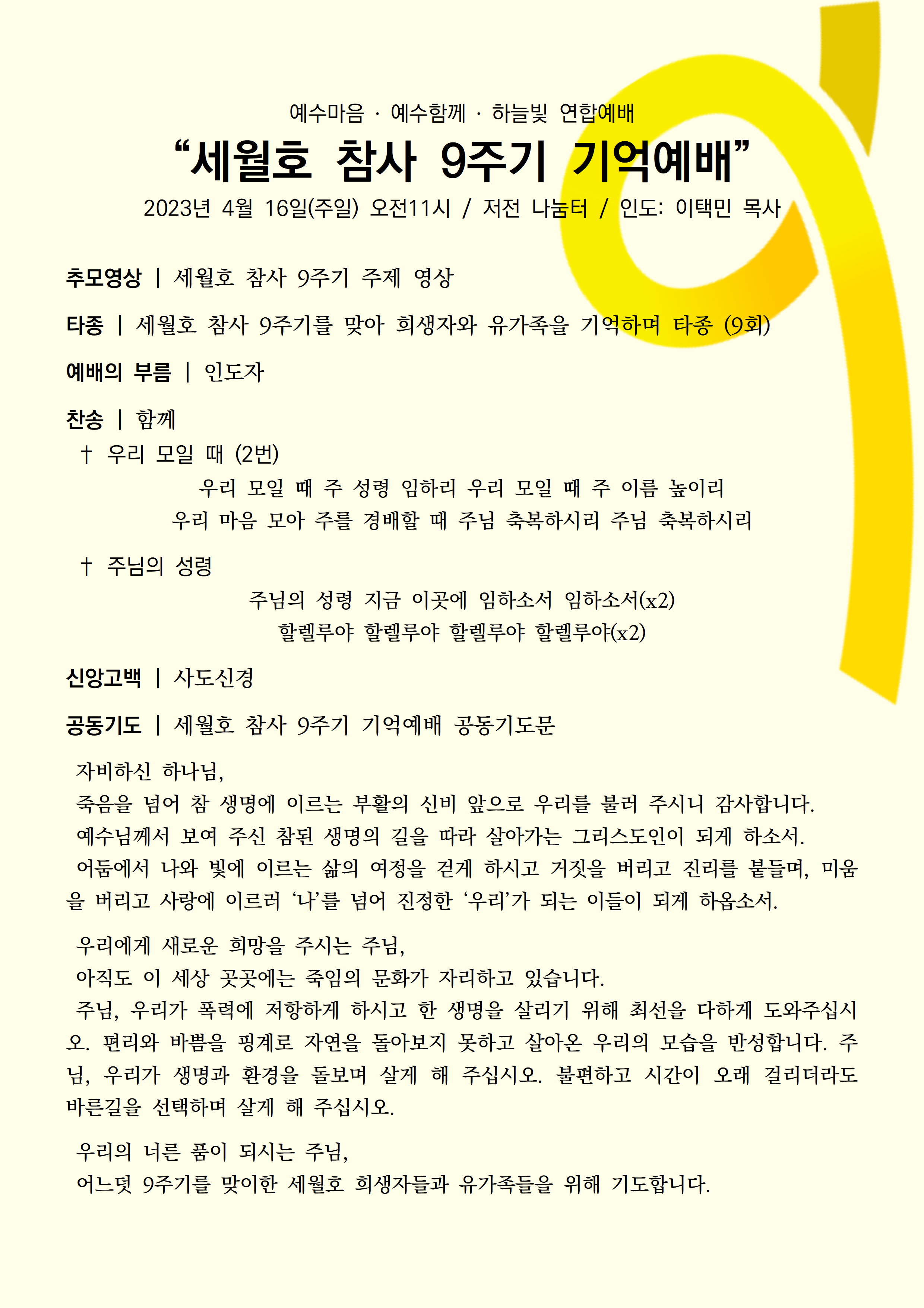 | 세월호 참사 9주기 순천 기억예배 전체 영상 (0) | 2023.04.18 |
