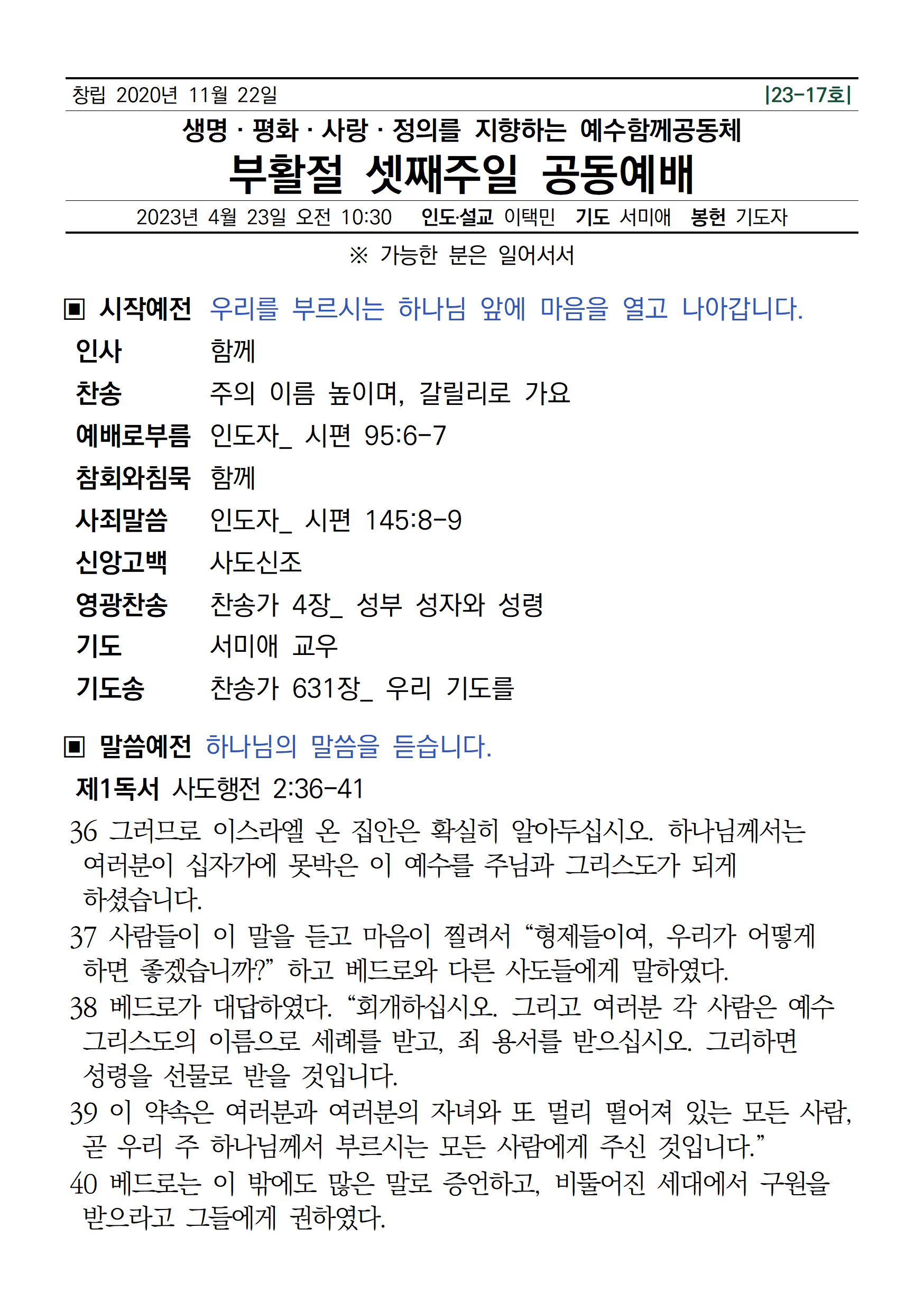 | [주일공동예배] 2023년 4월 23일 예수함께공동체 (0) | 2023.04.22 |