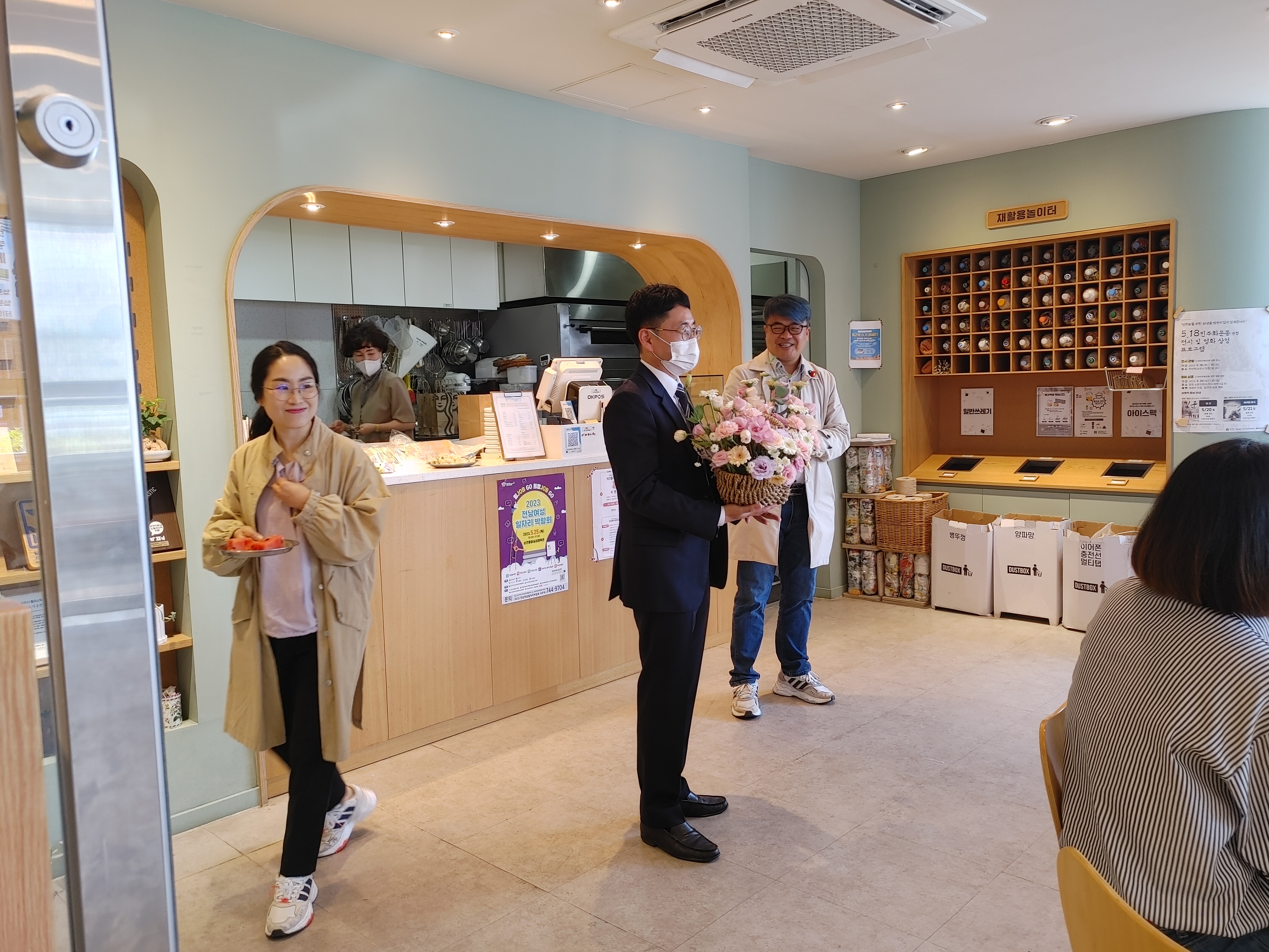 예배를 마치고 1층 카페에서 친교시간을 가졌습니다.