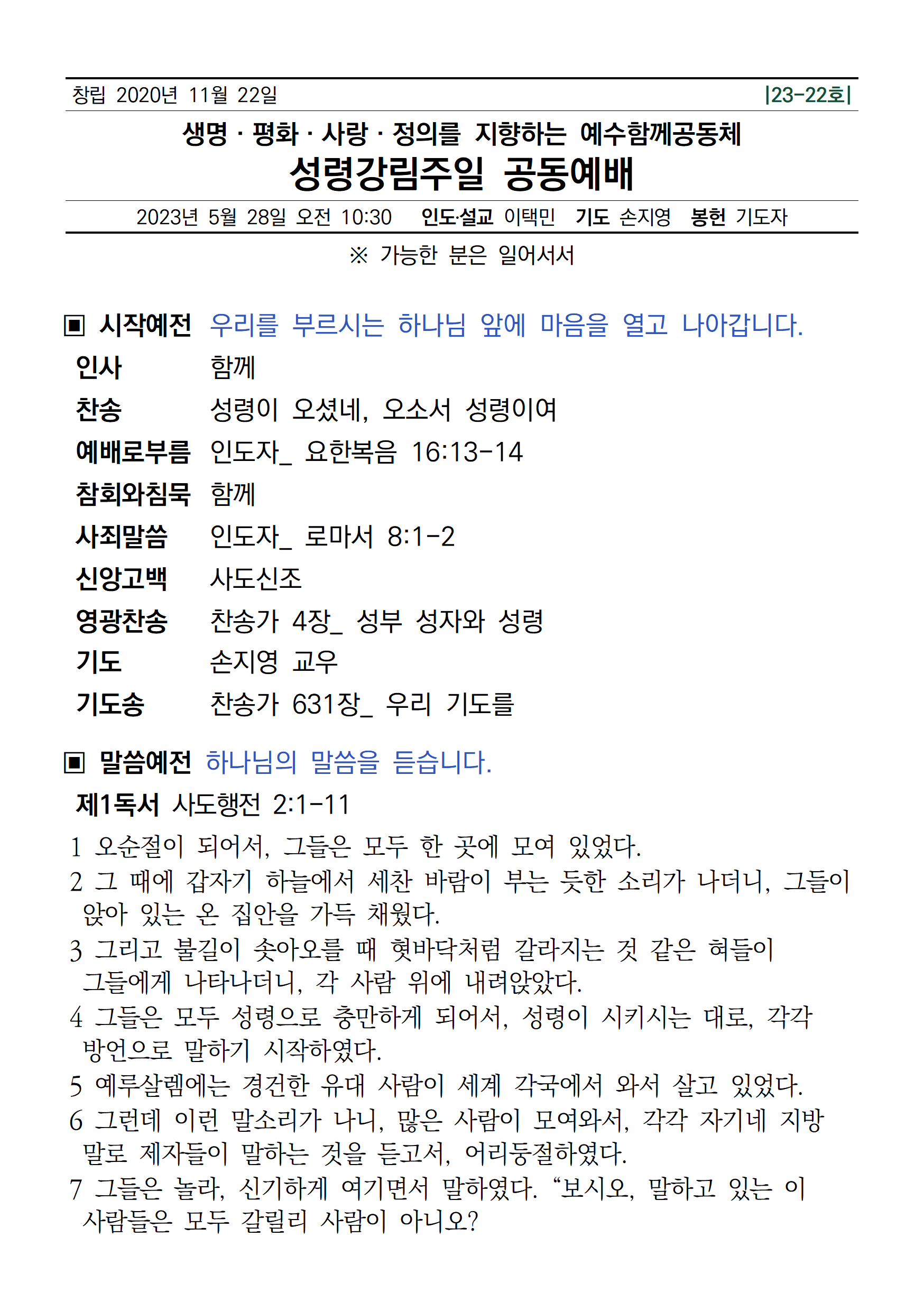 | [주보] 2023년 5월 21일 예수함께공동체 (0) | 2023.05.20 |