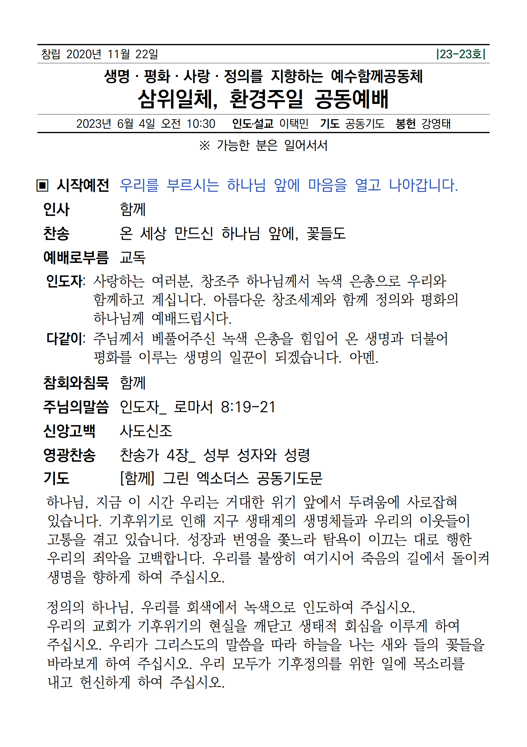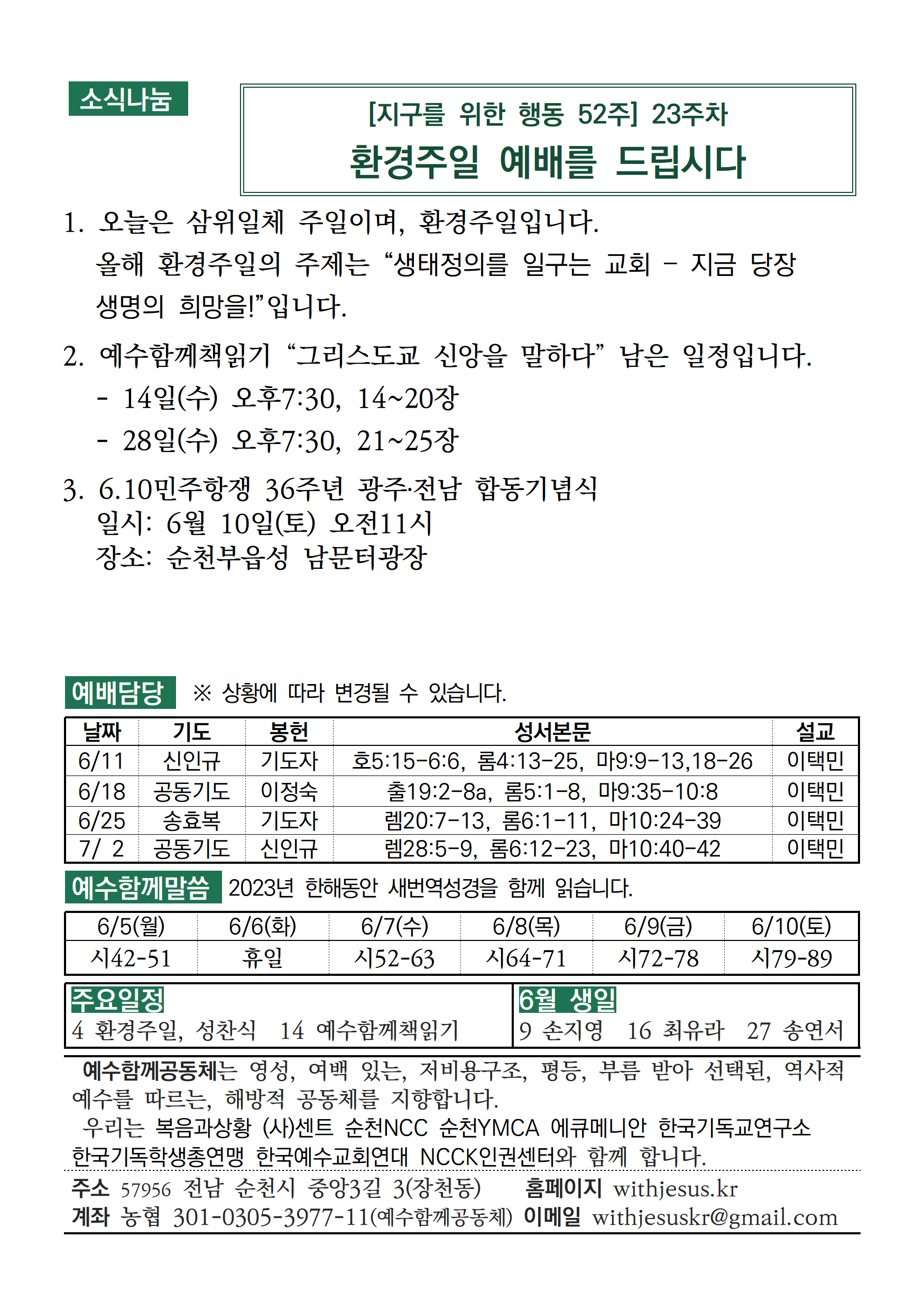 | [주보] 2023년 6월 11일 예수함께공동체 주일공동예배 (0) | 2023.06.10 |