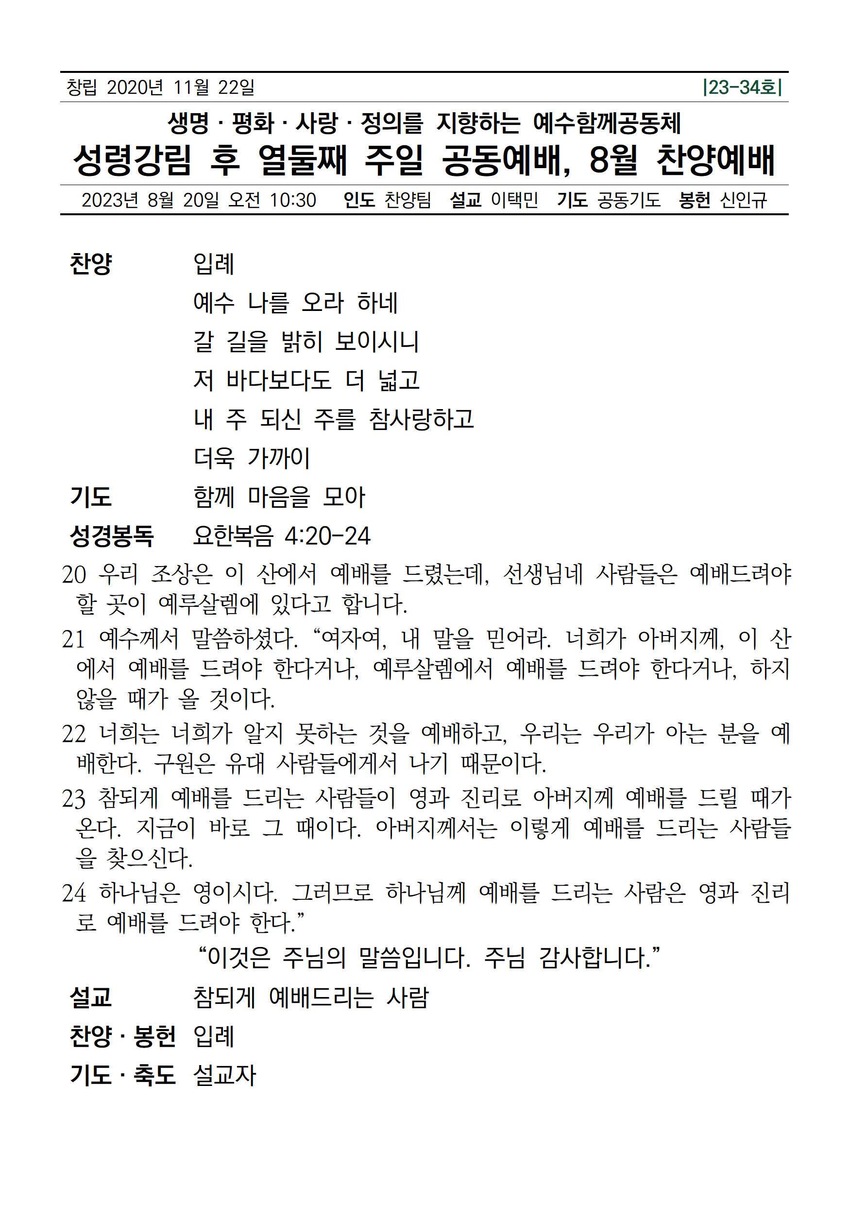| [주일공동예배] 2023년 8월 20일 예수함께공동체 (0) | 2023.08.19 |