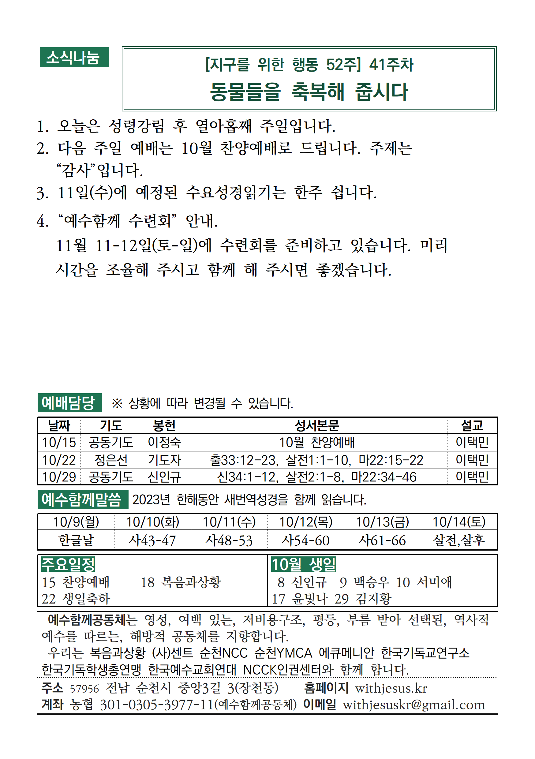 | [주보] 2023년 10월 15일 예수함께공동체 (0) | 2023.10.14 |