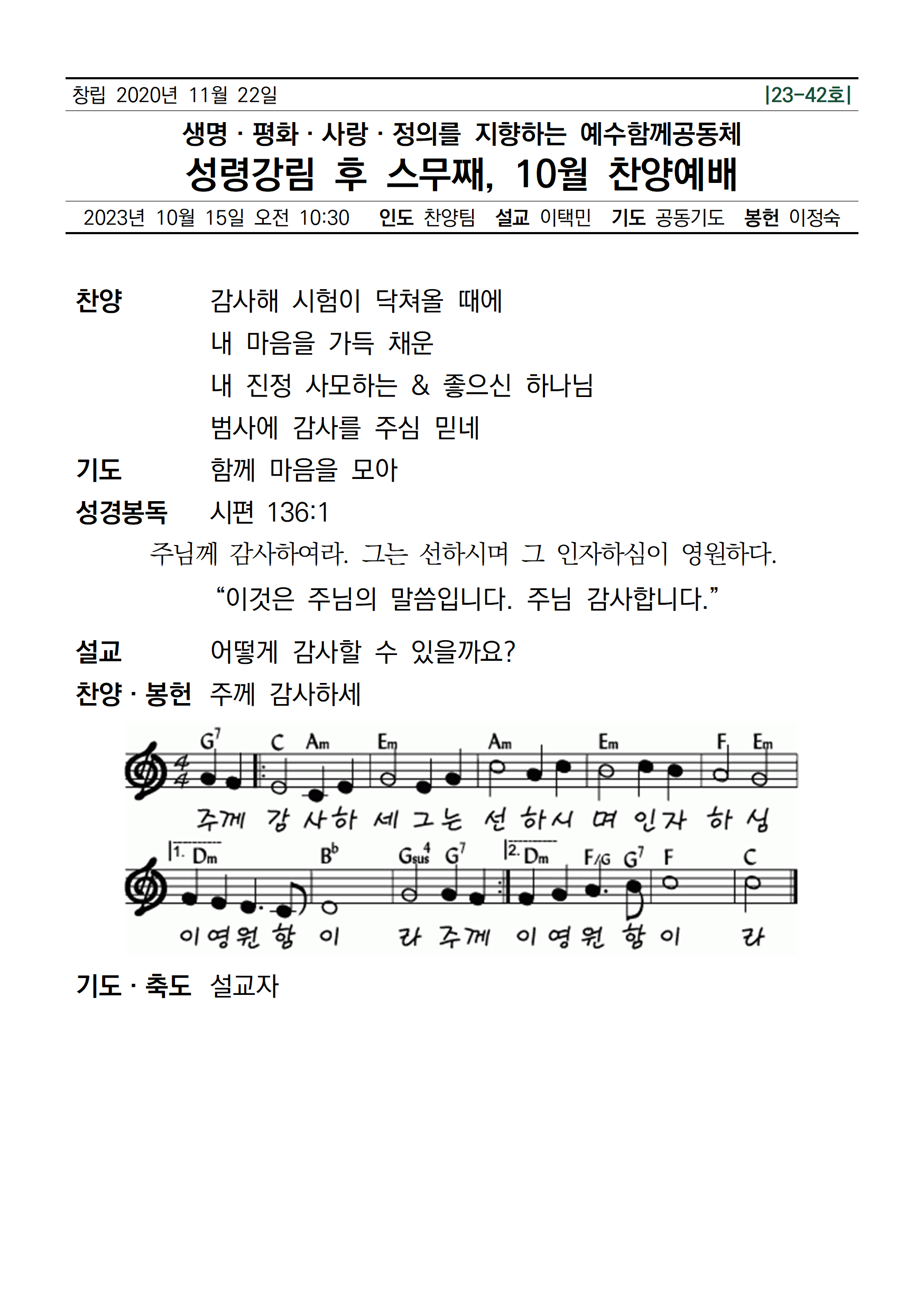 | [주보] 2023년 10월 22일 예수함께공동체 (0) | 2023.10.21 |