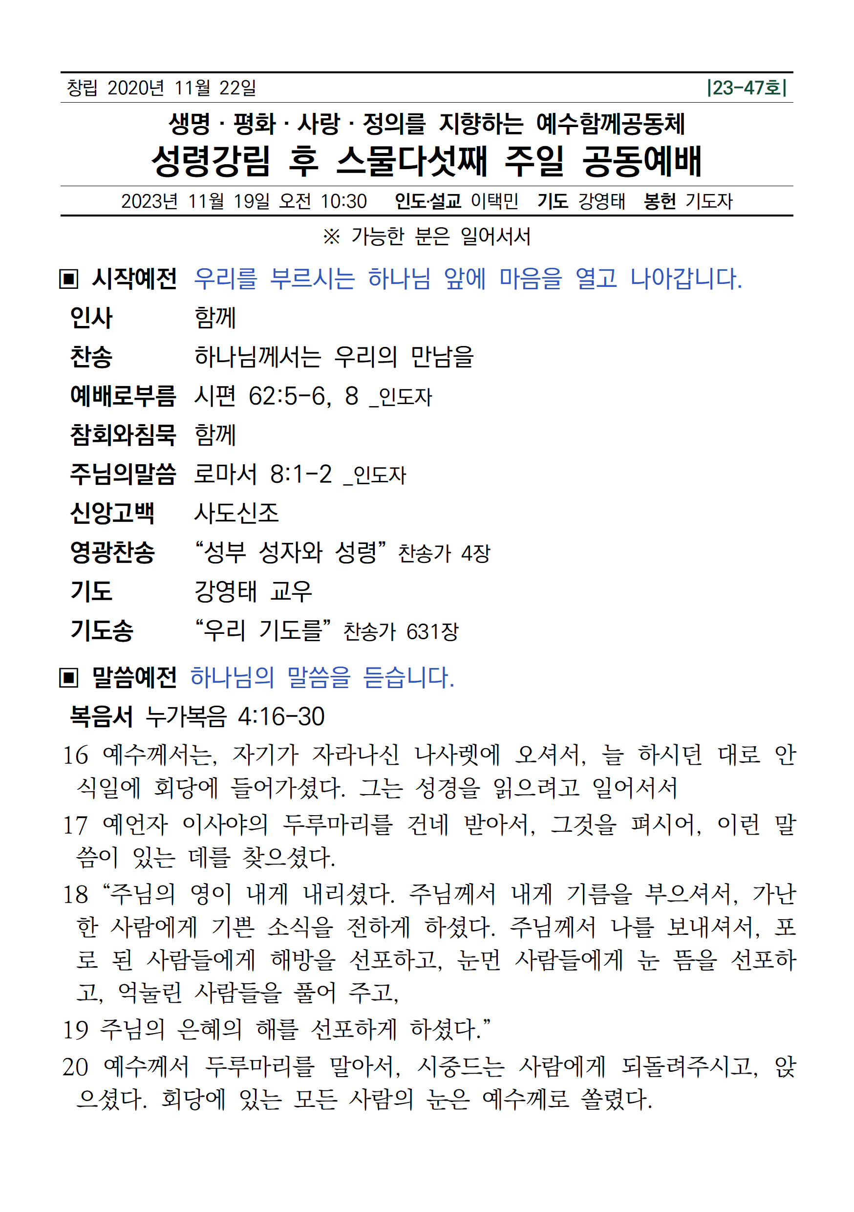 | [주보] 2023년 11월 26일 예수함께공동체 (0) | 2023.11.25 |
