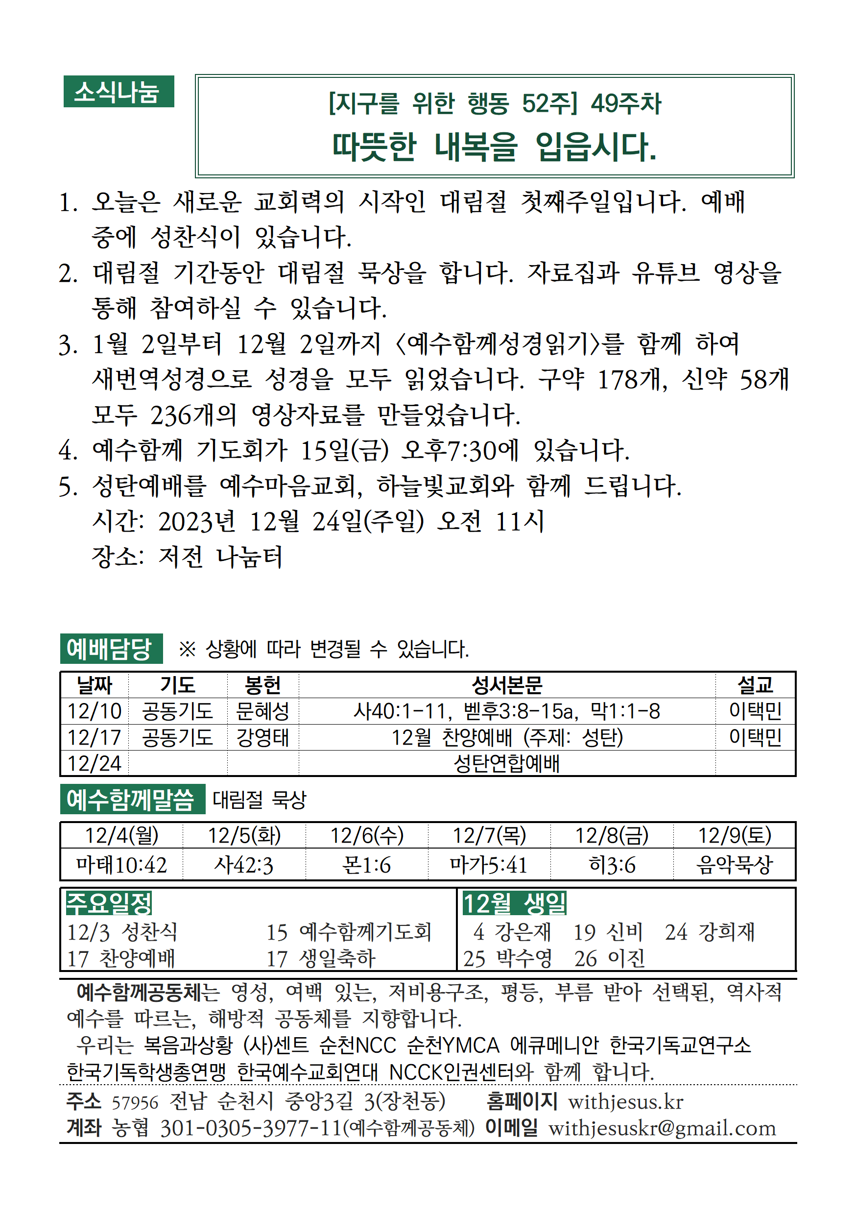 | [주보] 2023년 11월 26일 예수함께공동체 (0) | 2023.11.25 |