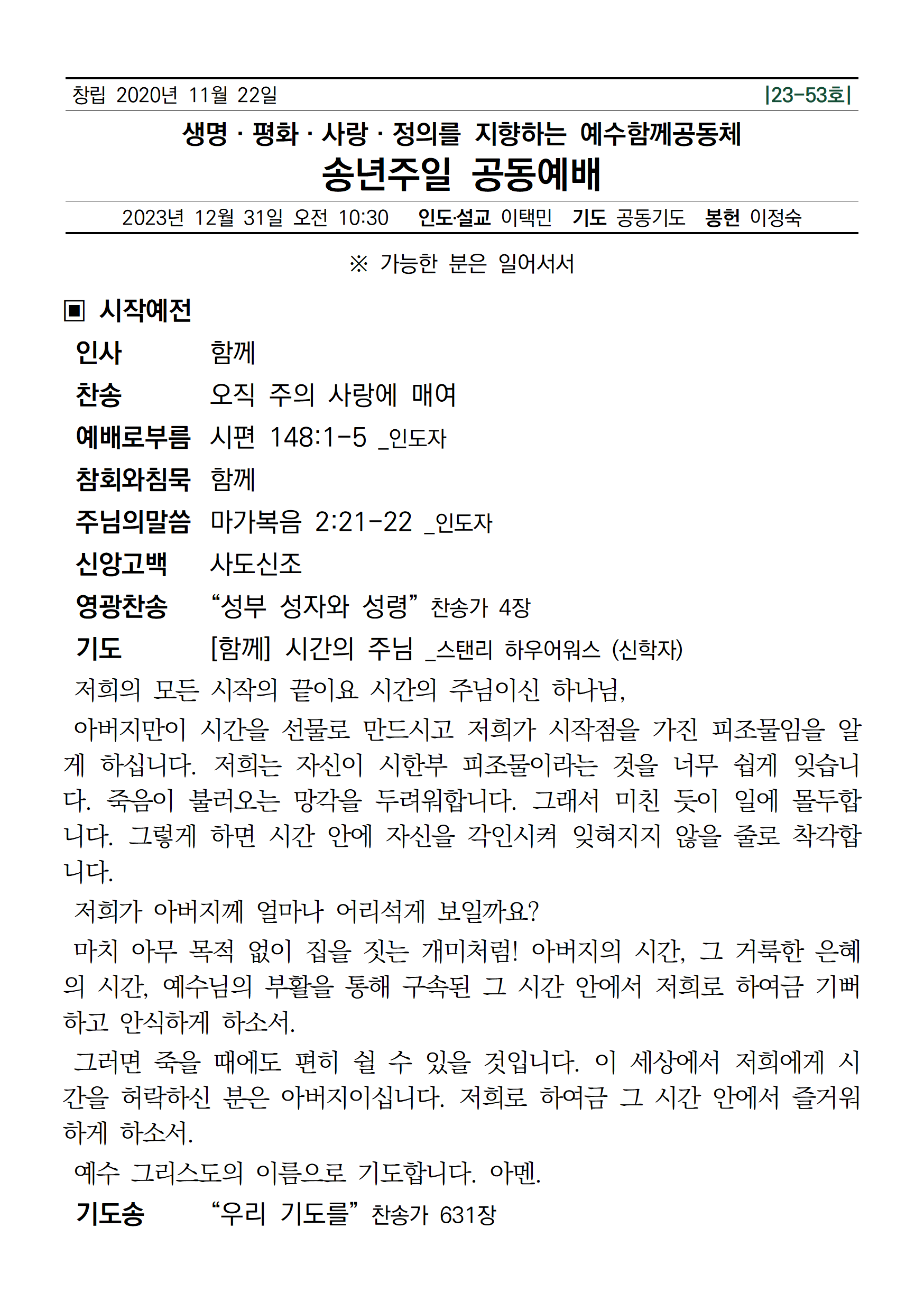 | [주일 공동예배] 2023년 12월 31일 예수함께공동체 (0) | 2023.12.30 |